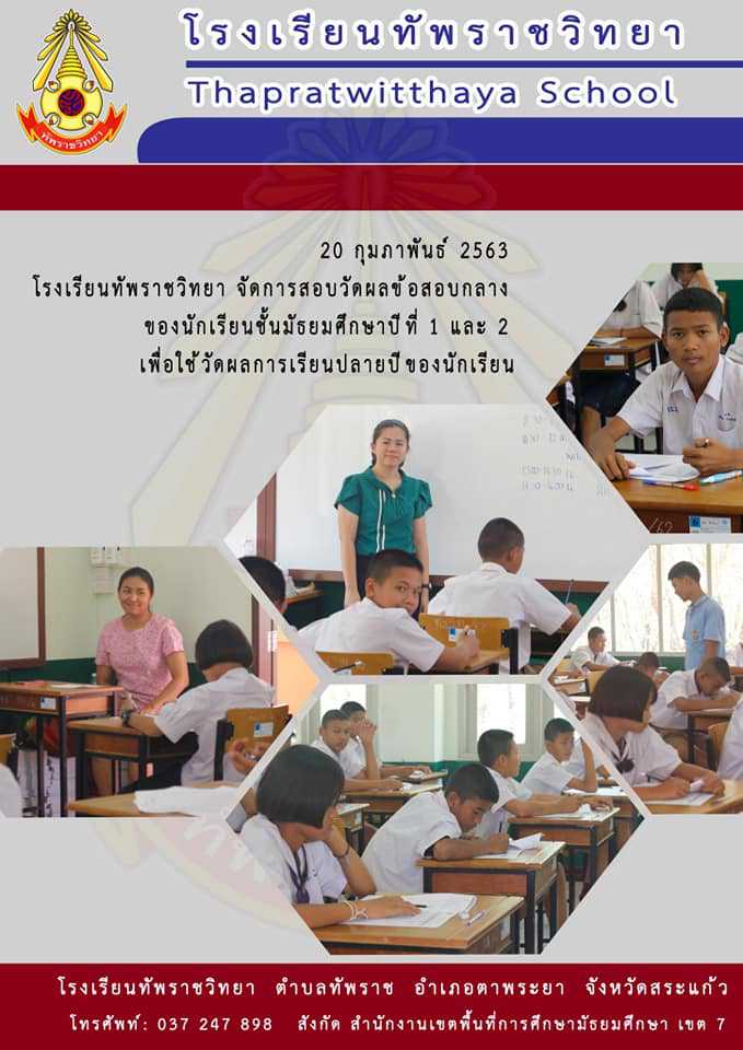 20 กุมภาพันธ์ 2563 โรงเรียนทัพราชวิทยา จัดการสอบวัดผลข้อสอบกลาง ของนักเรียนชั้นมัธยมศึกษาปีที่1และ2 เพื่อใช้วัดผลการเรียนปลายปีของนักเรียน