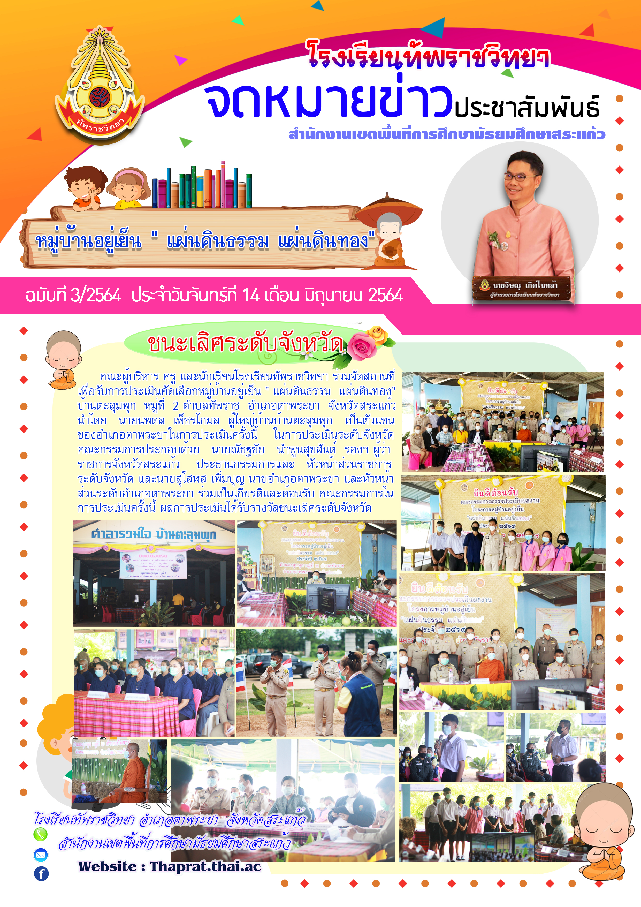 คณะผู้บริหาร ครู และนักเรียนโรงเรียนทัพราชวิทยา ร่วมจัดสถานที่ เพื่อรับการประเมินคัดเลือกหมู่บ้านอยู่เย็น