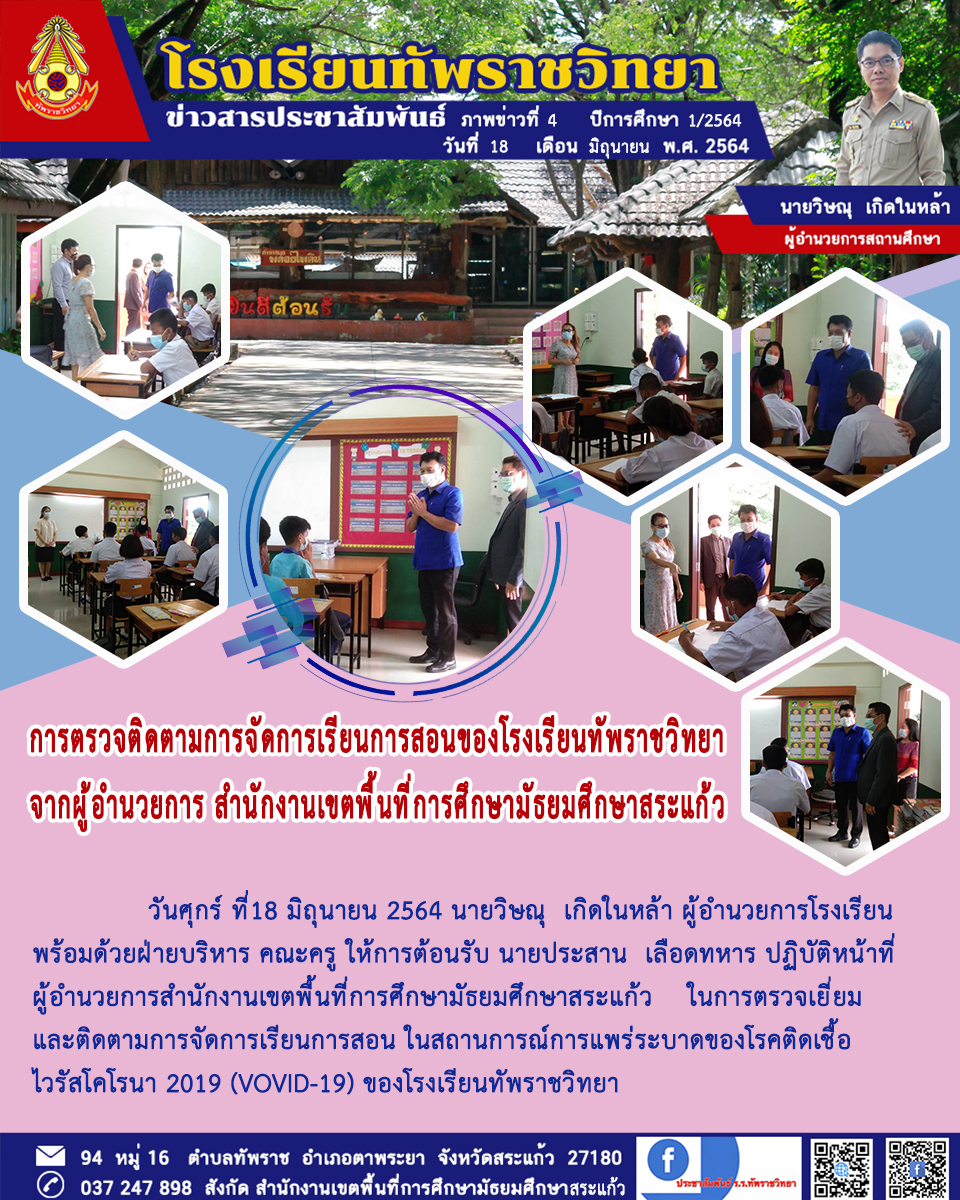 ผอ.สพม.สระแก้วออกตรวจเยี่ยมโรงเรียนทัพราชวิทยาในสถานการณ์โควิด