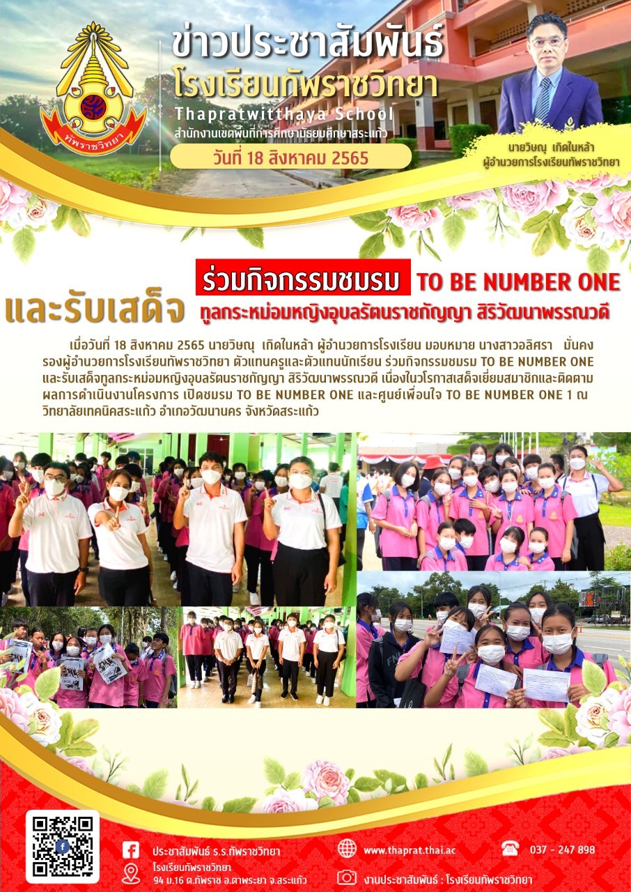 ร่วมกิจกรรม To Be Number One ณ วิทยาลัยเทคนิคสระแก้ว