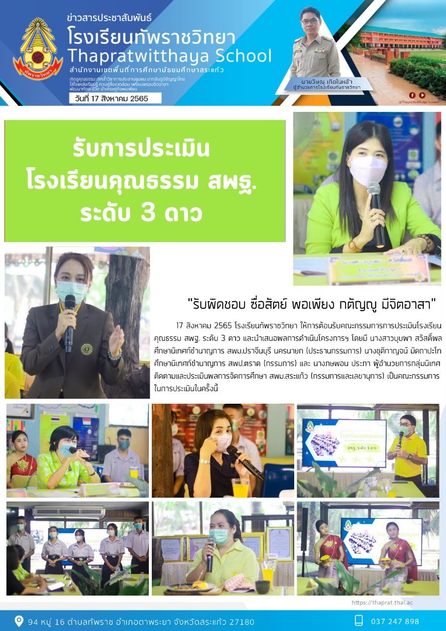 ระดับประเมิน โรงเรียนคุณธรรมระดับ 3 ดาว