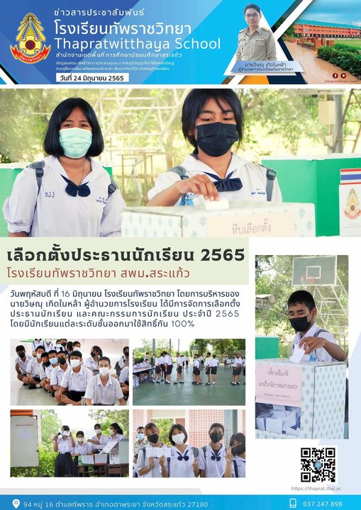 เลือกตั้งประธานนักเรียน ประจำปีการศึกษา 2565 16 มิถุนายน 2565 โรงเรียนทัพราชวิทยา