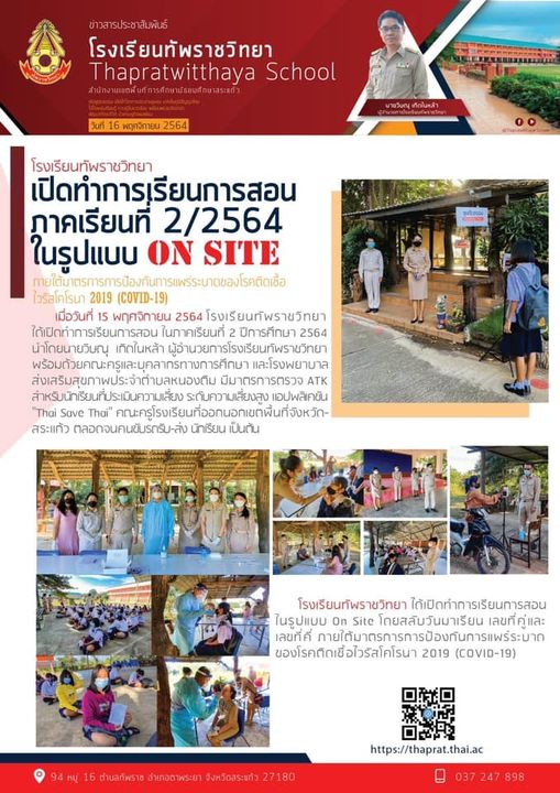 เปิดทำการเรียนการสอน On site ภาคเรียนที่ 2/2564
