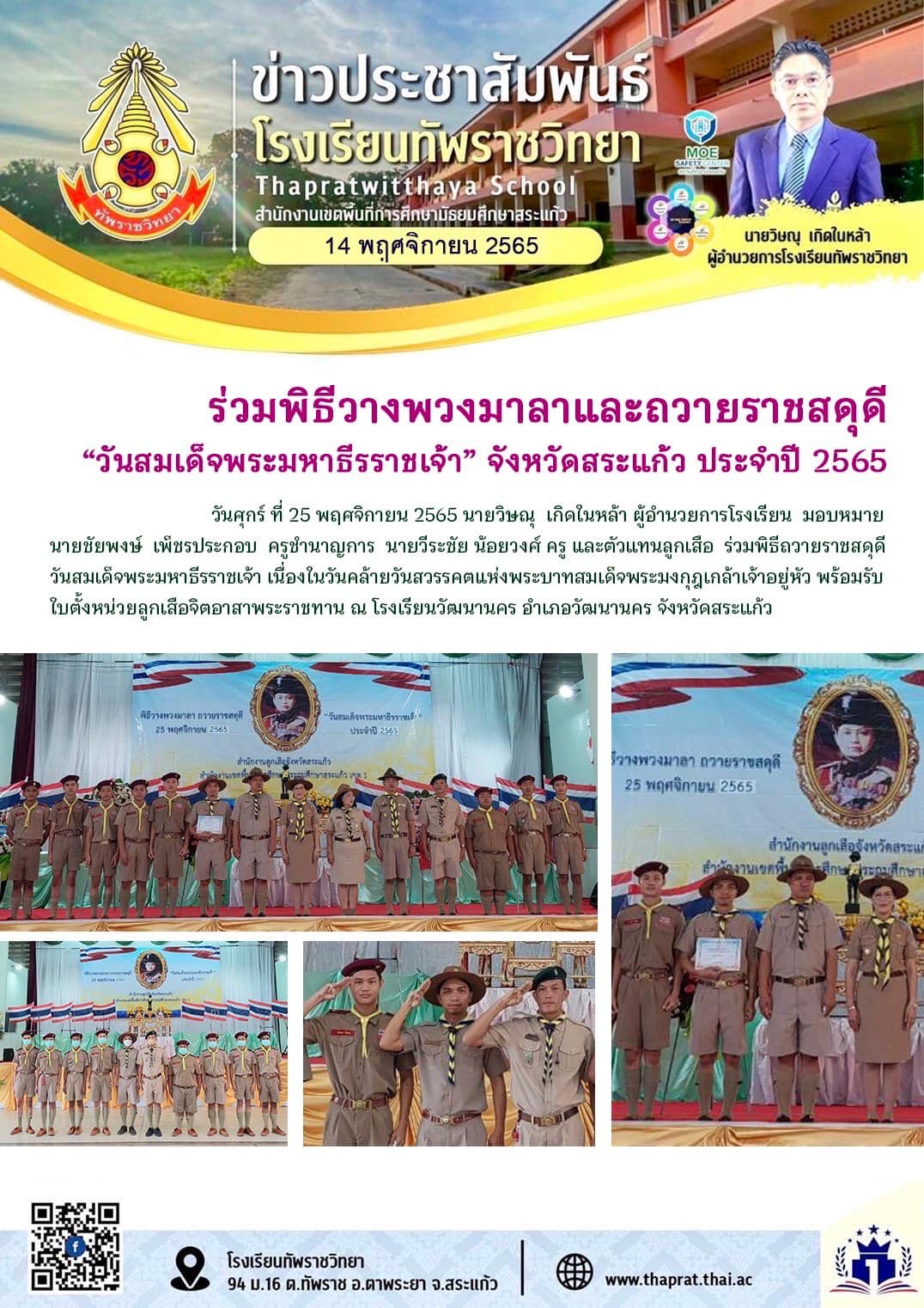 ร่วมพิธีวางพวงมาลาและถวายราชสดุดี วันสมเด็จพระมหาธีรราชเจ้า จังหวัดสระแก้ว ปี 2565
