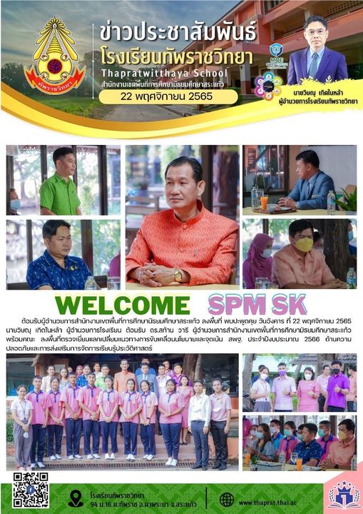 ต้อนรับผู้อำนวยการสำนักงานเขตพื้นที่การศึกษามัธยมศึกษาสระแก้ว ลงพื้นที่ตรวจเยี่ยมนโยบายแลกเปลี่ยนจุดเน้น สพฐ