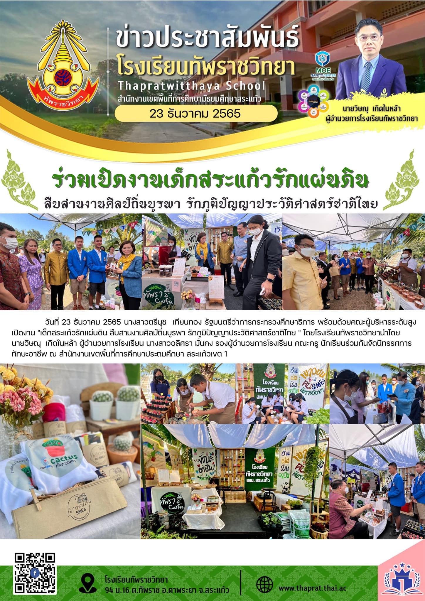 ร่วมเปิดงานเด็กสระแก้วรักษ์แผ่นดิน สืบสานงานศิลป์ถิ่นบูรพา รักษ์ภูมิปัญญาประวัติศาสตร์ไทย
