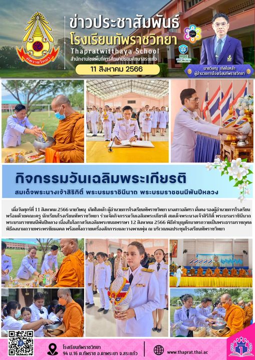 เมื่อวันศุกร์ที่ 11 สิงหาคม 2566 นายวิษณุ เกิดในหล้า ผู้อำนวยการโรงเรียนทัพราชวิทยา นางสาวอลิศรา มั่นคง รองผู้อำนวยการโรงเรียน พร้อมด้วยคณะครู นักเรียนโรงเรียนทัพราชวิทยา ร่วมจัดกิจกรรมวันเฉลิมพระเก