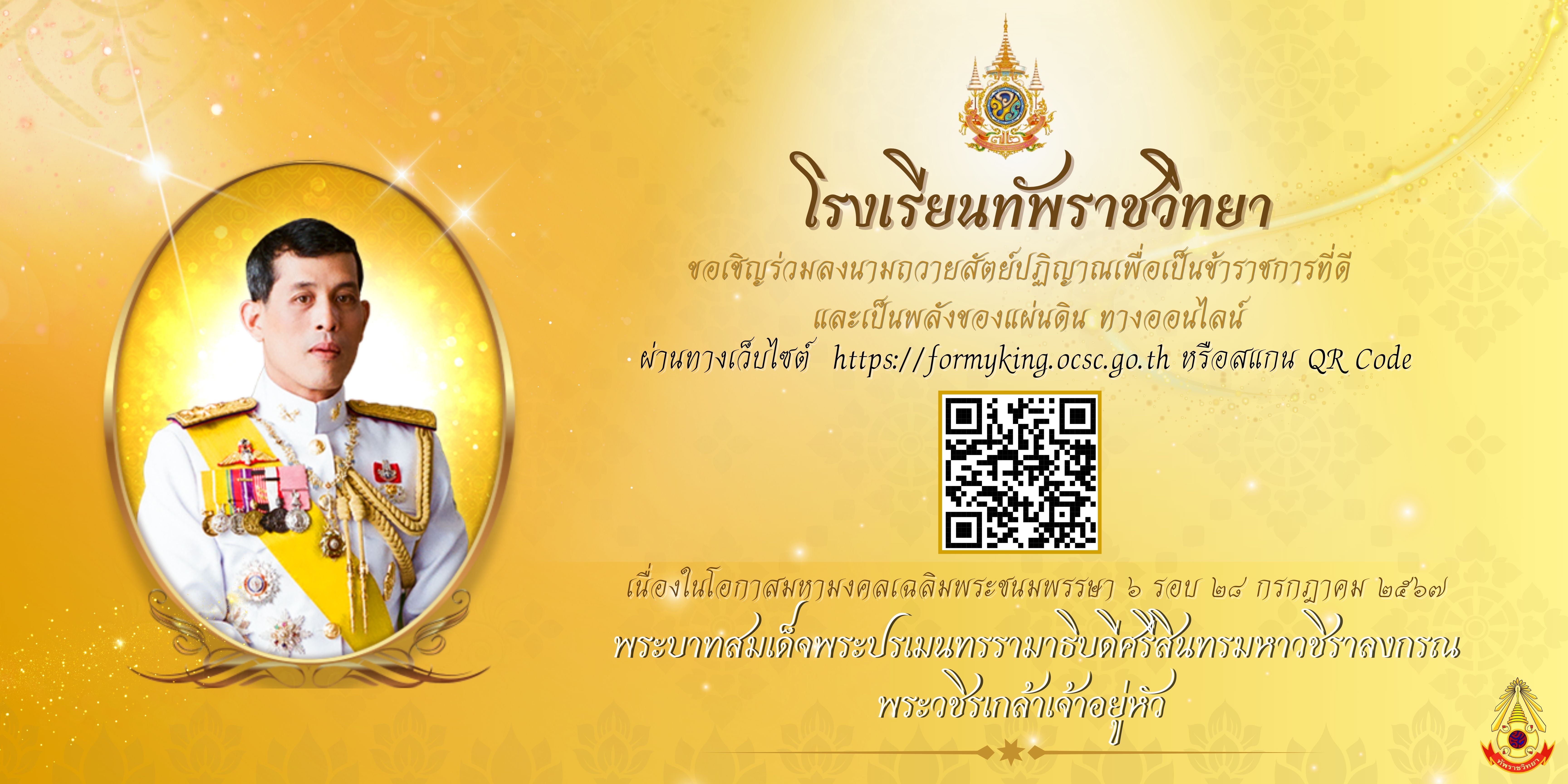 ขอเชิญร่วมลงนามถวายสัตย์ปฏิญาณเพื่อเป็นข้าราชการที่ดีและเป็นพลังของแผ่นดิน ทางออนไลน์