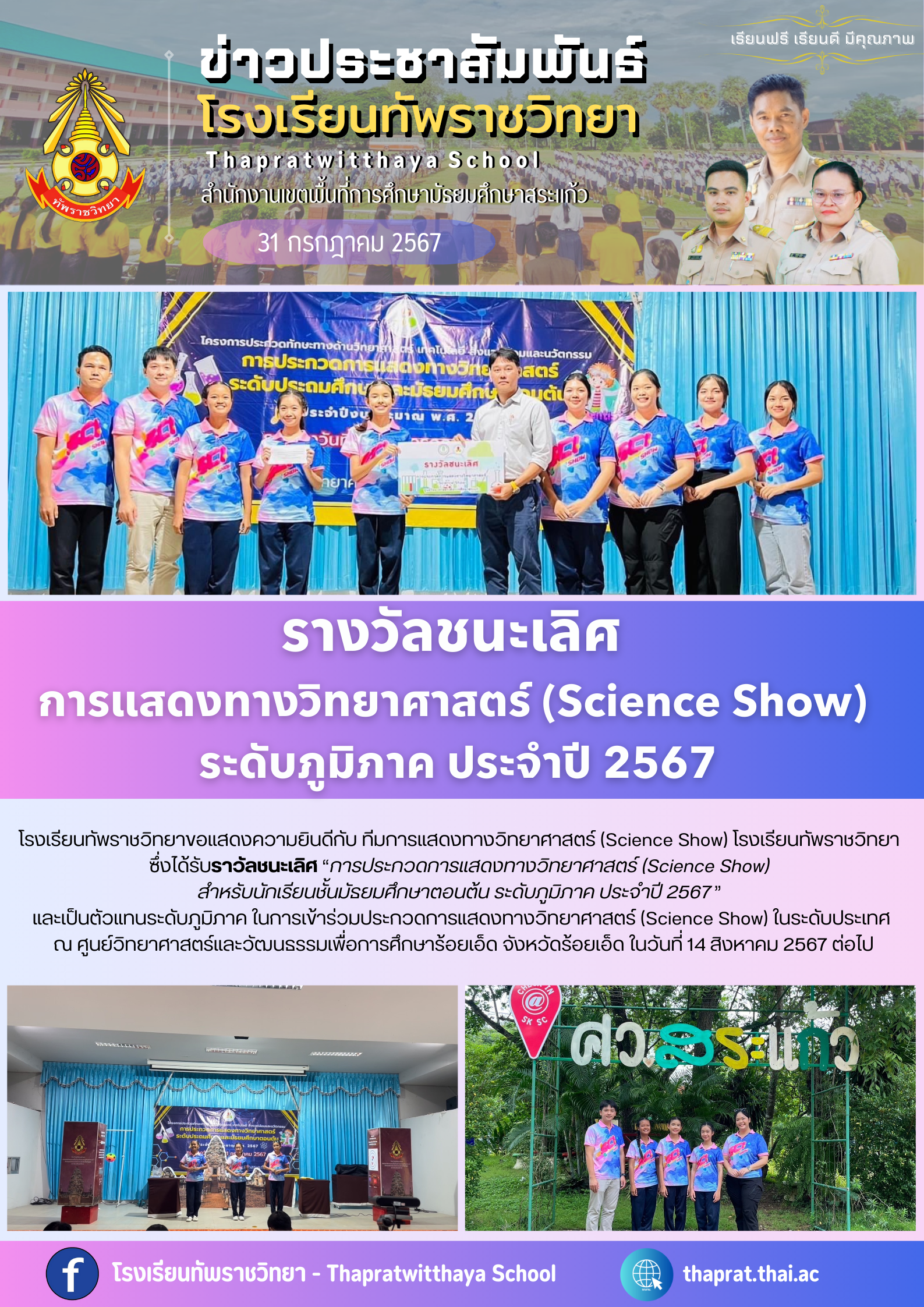 รางวัลชนะเลิศ การแสดงทางวิทยาศาสตร์ (Science Show) ระดับภูมิภาค ประจำปี 2567