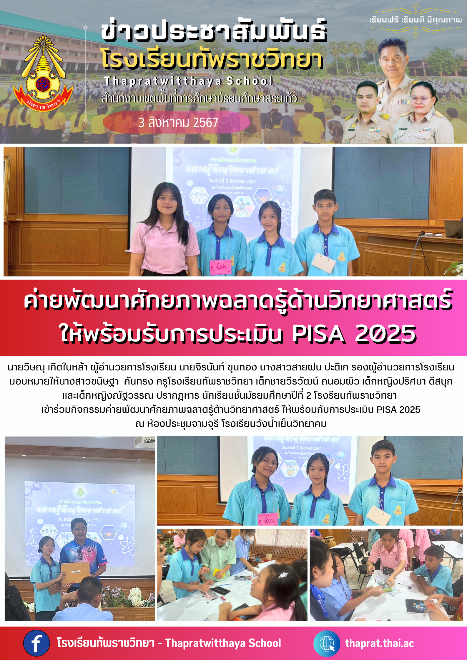 ค่ายพัฒนาศักยภาพฉลาดรู้ด้านวิทยาศาสตร์ให้พร้อมรับการประเมิน PISA 2025