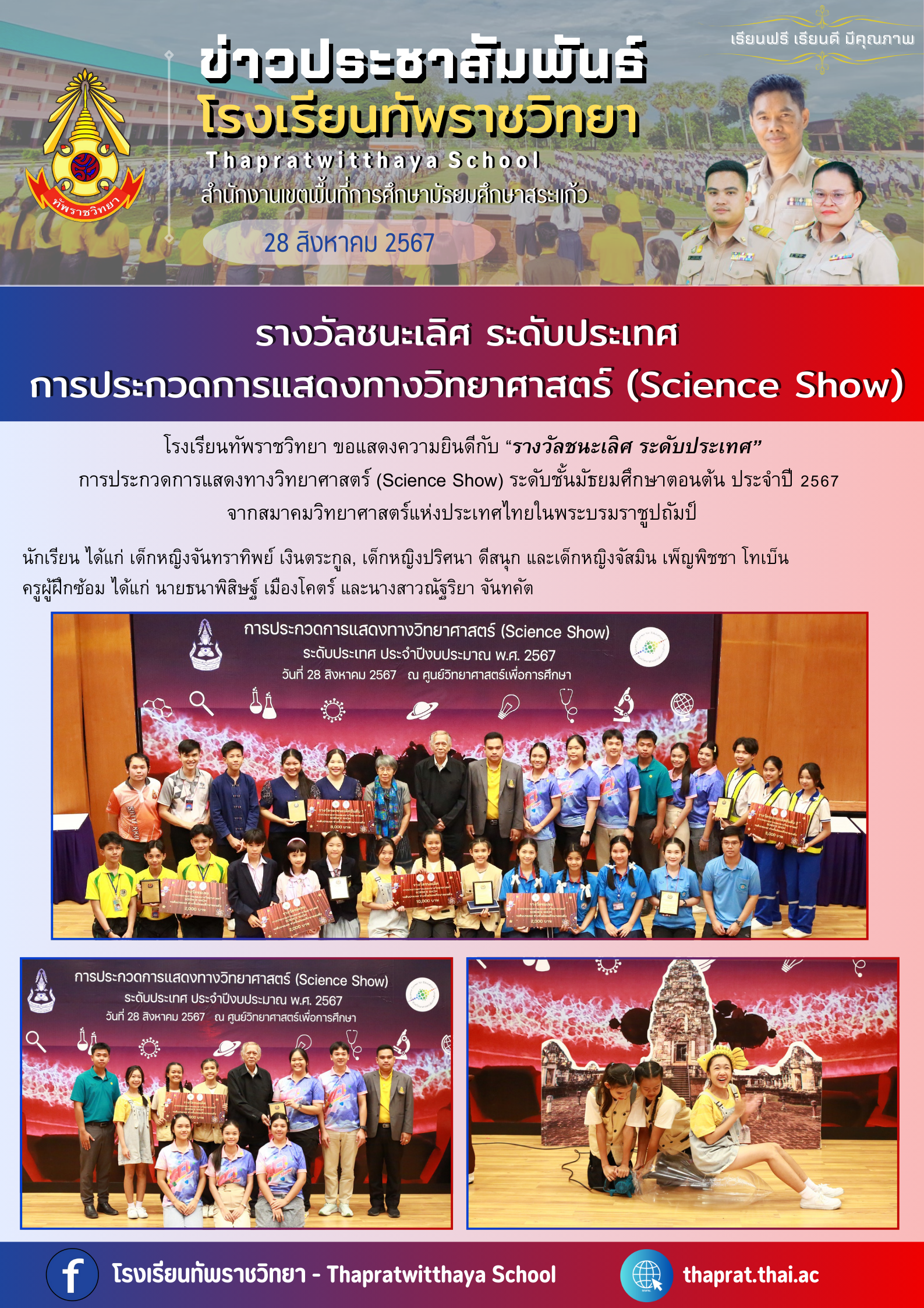 รางวัลชนะเลิศระดับประเทศ การแสดงทางวิทยาศาสตร์ (Science Show)