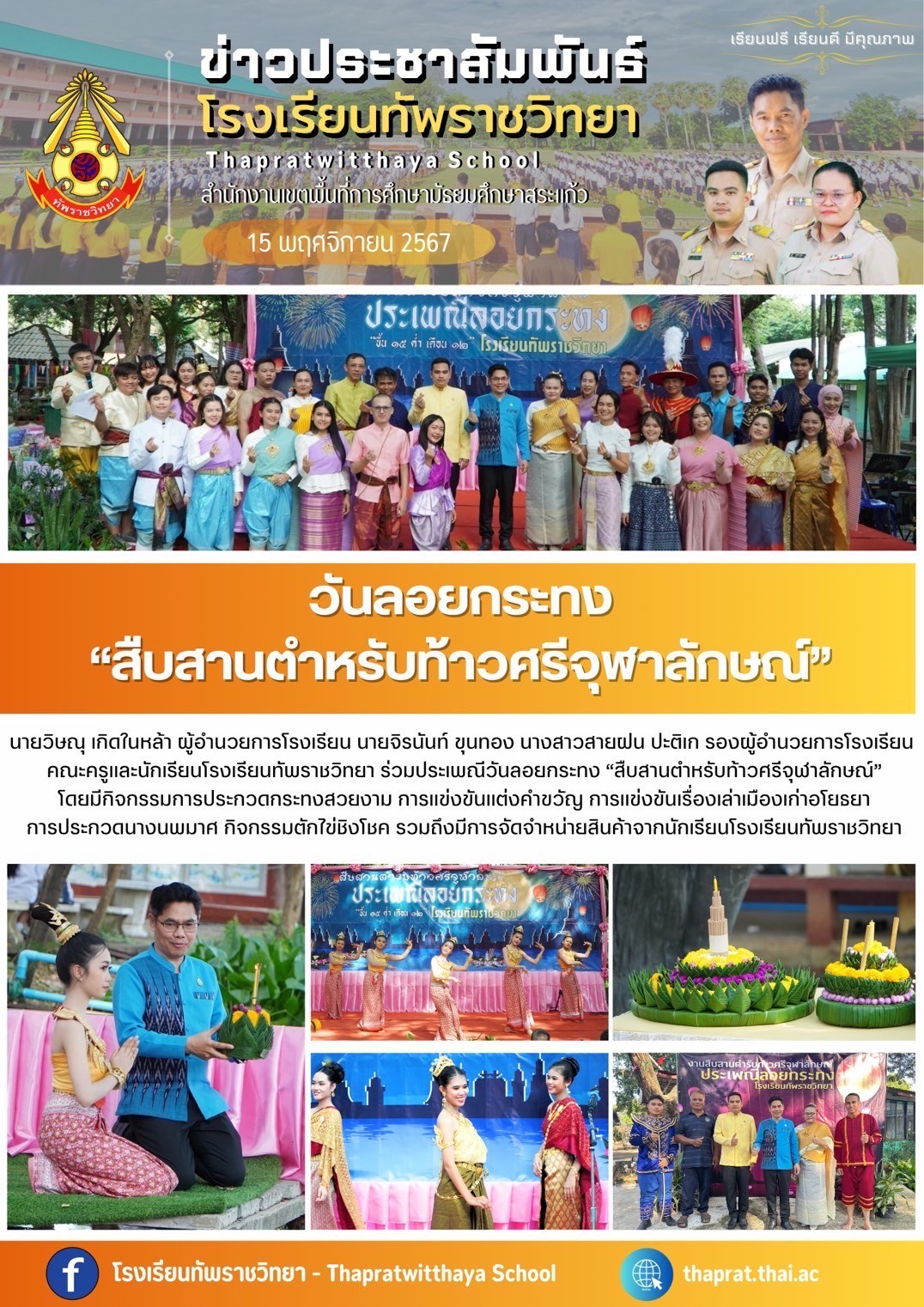 วันลอยกระทง "สืบสานตำหรับท้าวศรีจุฬาลักษณ์"