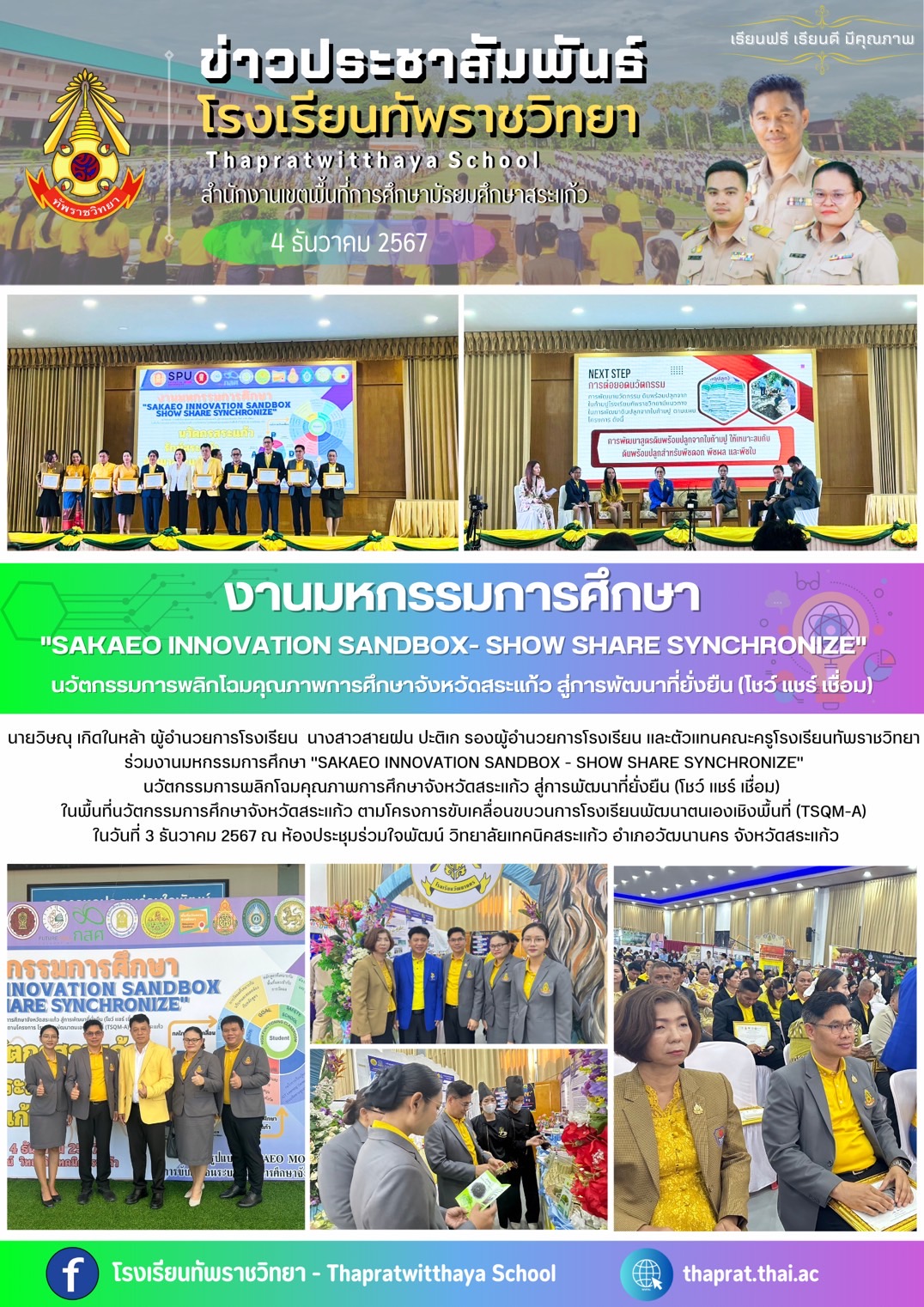 งานมหกรรมการศึกษา "SAKAEO INNOVATION SANDBOX - SHOW SHARE SYNCHRONIZE" นวัตกรรมการพลิกโฉมคุณภาพการศึกษาจังหวัดสระแก้ว สู่การพัฒนาที่ยั่งยืน (โชว์ แชร์ เชื่อม) ในพื้นพื้นที่นวัตกรรมการศึกษาจังหวัดสระแ