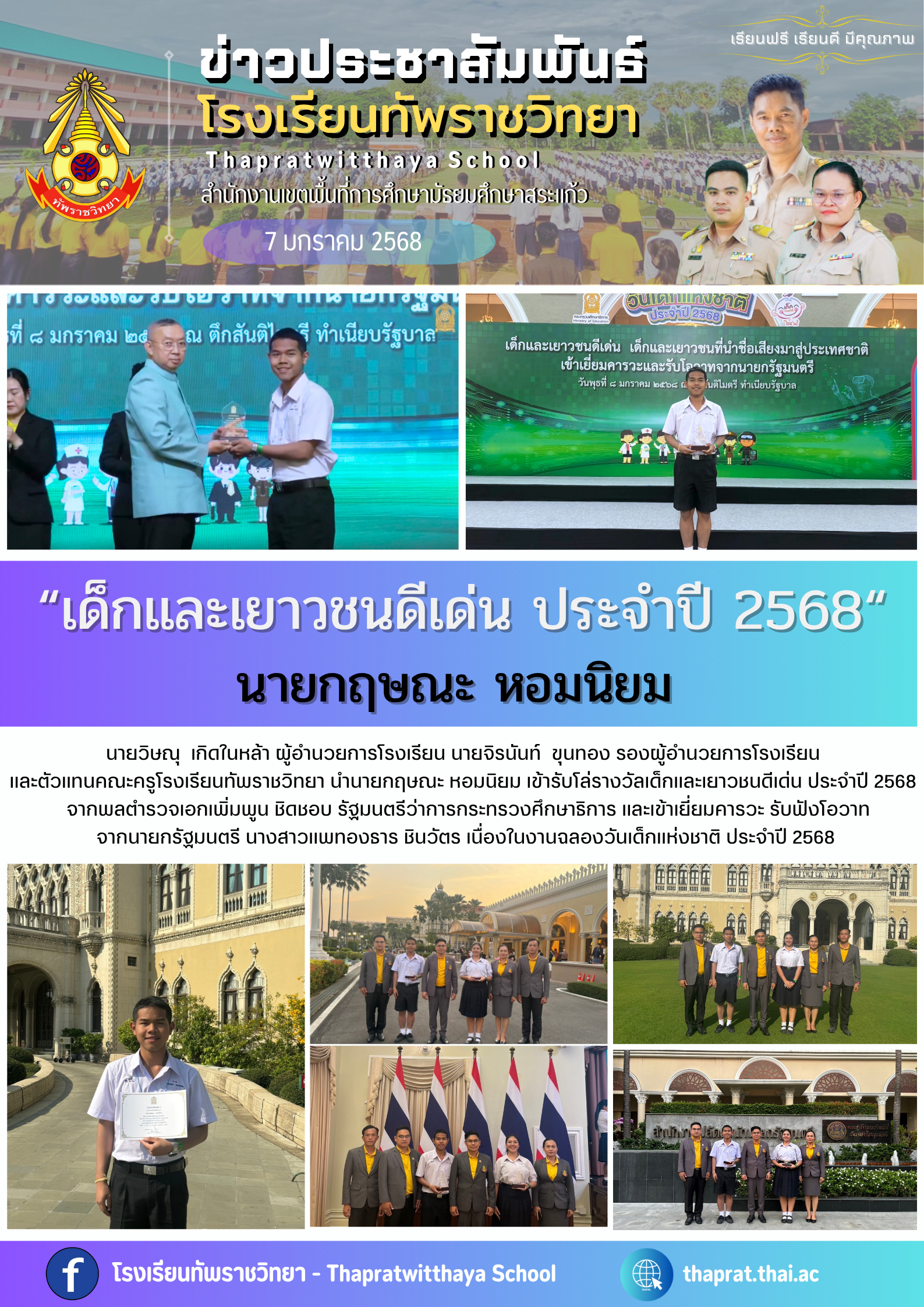นายกฤษณะ หอมนิยม เข้ารับรางวัล เด็กและเยาวชนดีเด่น ประจำปี 2568