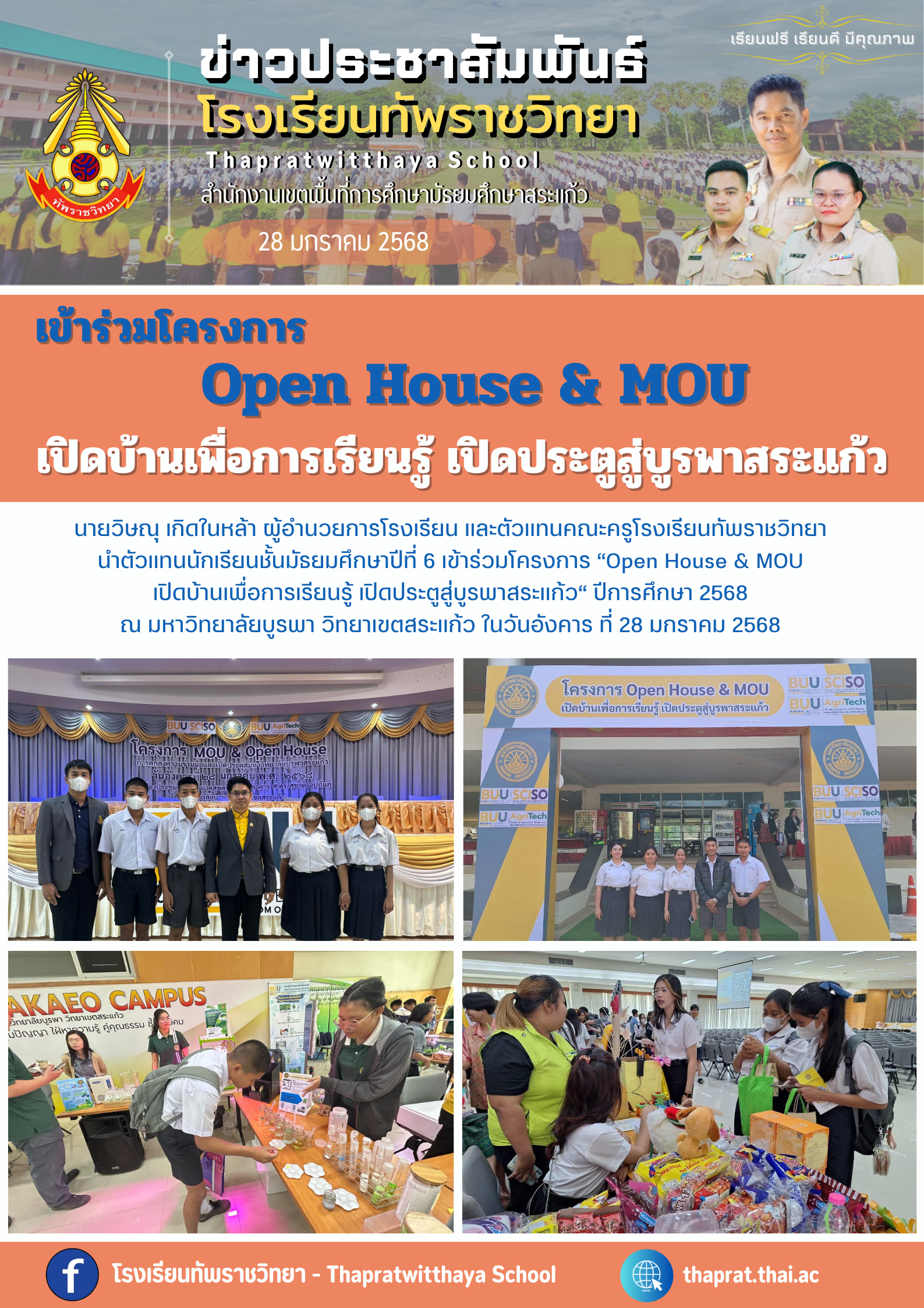 เข้าร่วมโครงการ Open House & MOU เปิดบ้านเพื่อการเรียนรู้ เปิดประตูสู่บูรพาสระแก้ว