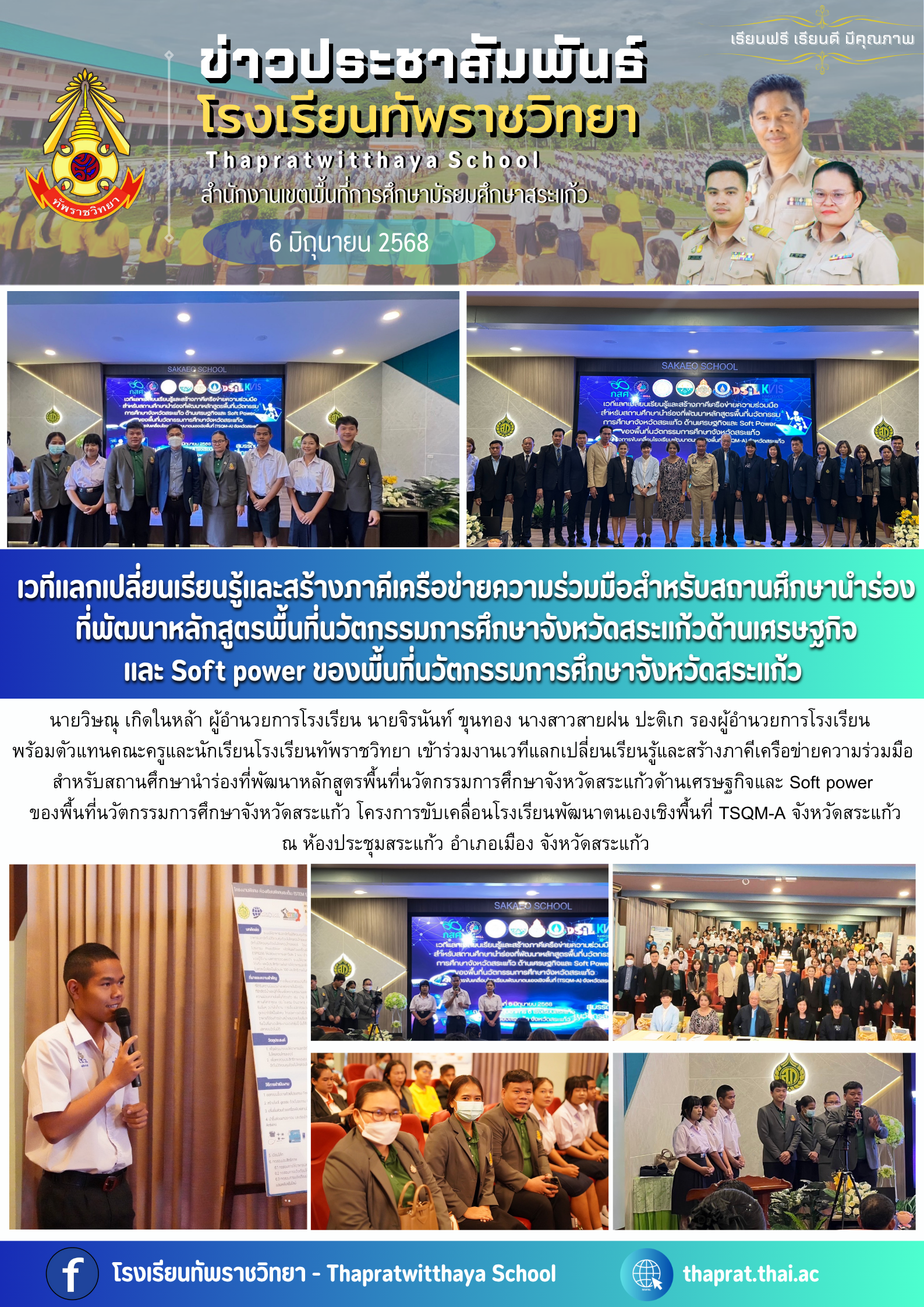 ร่วมงานเวทีแลกเปลี่ยนเรียนรู้ สถานศึกษานำร่องที่พัฒนาหลักสูตรพื้นที่นวัตกรรม จ.สระแก้ว