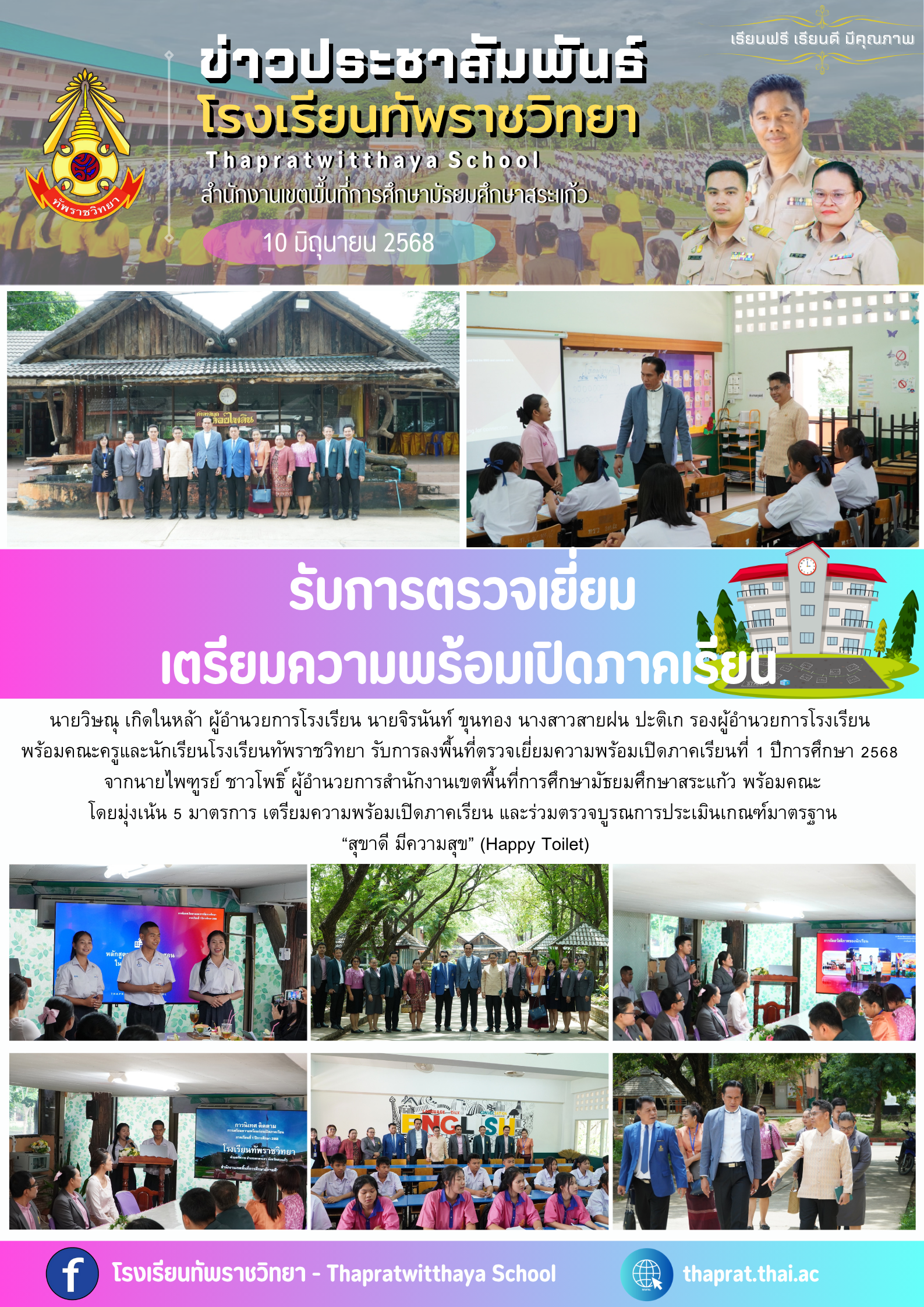รับการตรวจเยี่ยมเตรียมความพร้อมเปิดภาคเรียน 2568 จาก สพม.สระแก้ว