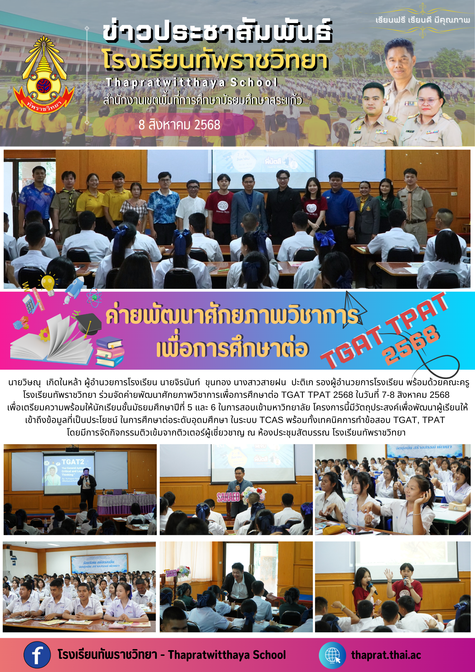 ค่ายพัฒนาศักยภาพวิชาการเพื่อการศึกษาต่อ TGAT TPAT 2568