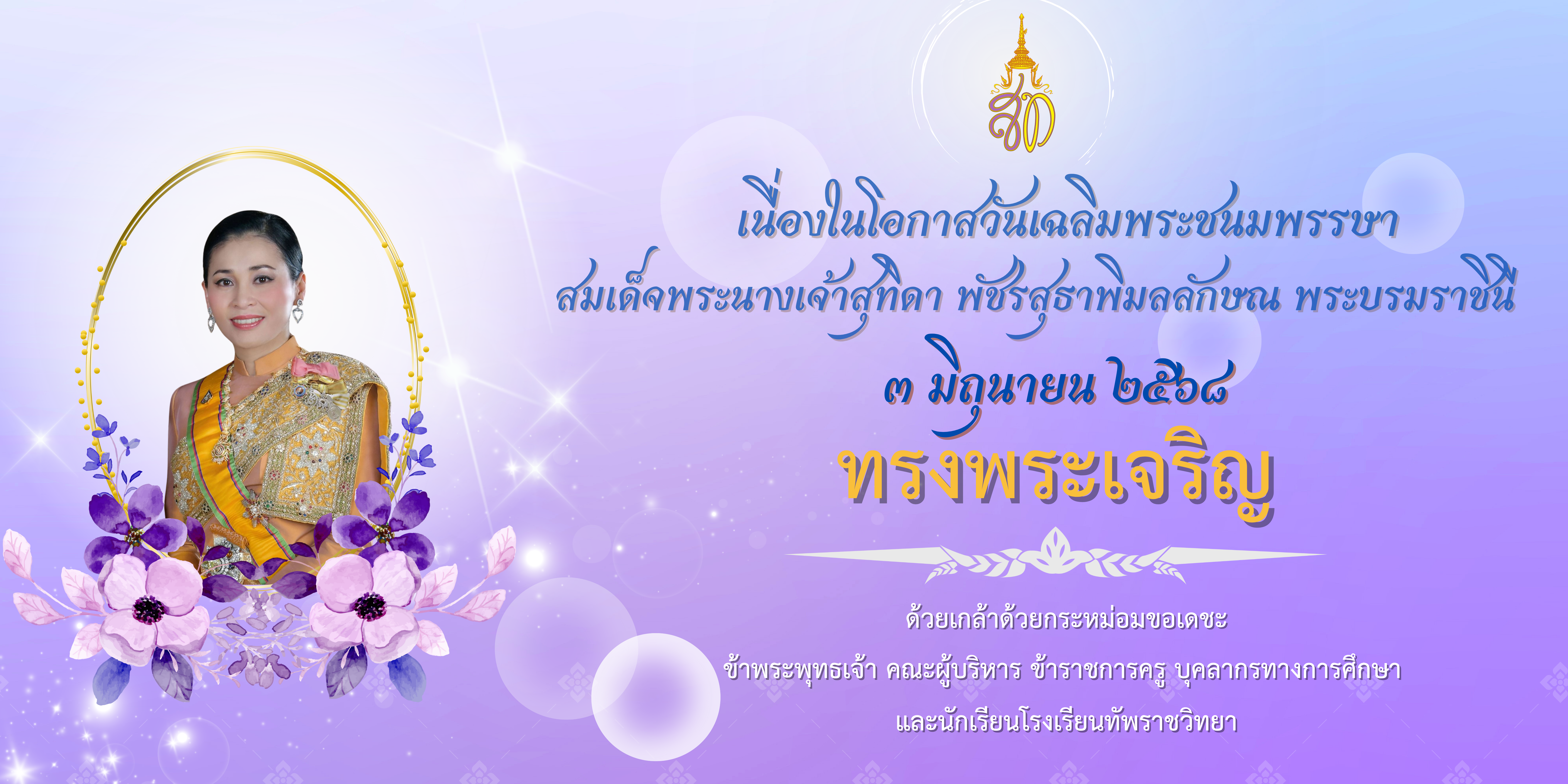 วันเฉลิมพระชนมพรรษาสมเด็จพระนางเจ้าสุทิดา พัชรสุธาพิมลลักษณ พระบรมราชินี 3 มิถุนายน 2568 "ทรงพระเจริญ"