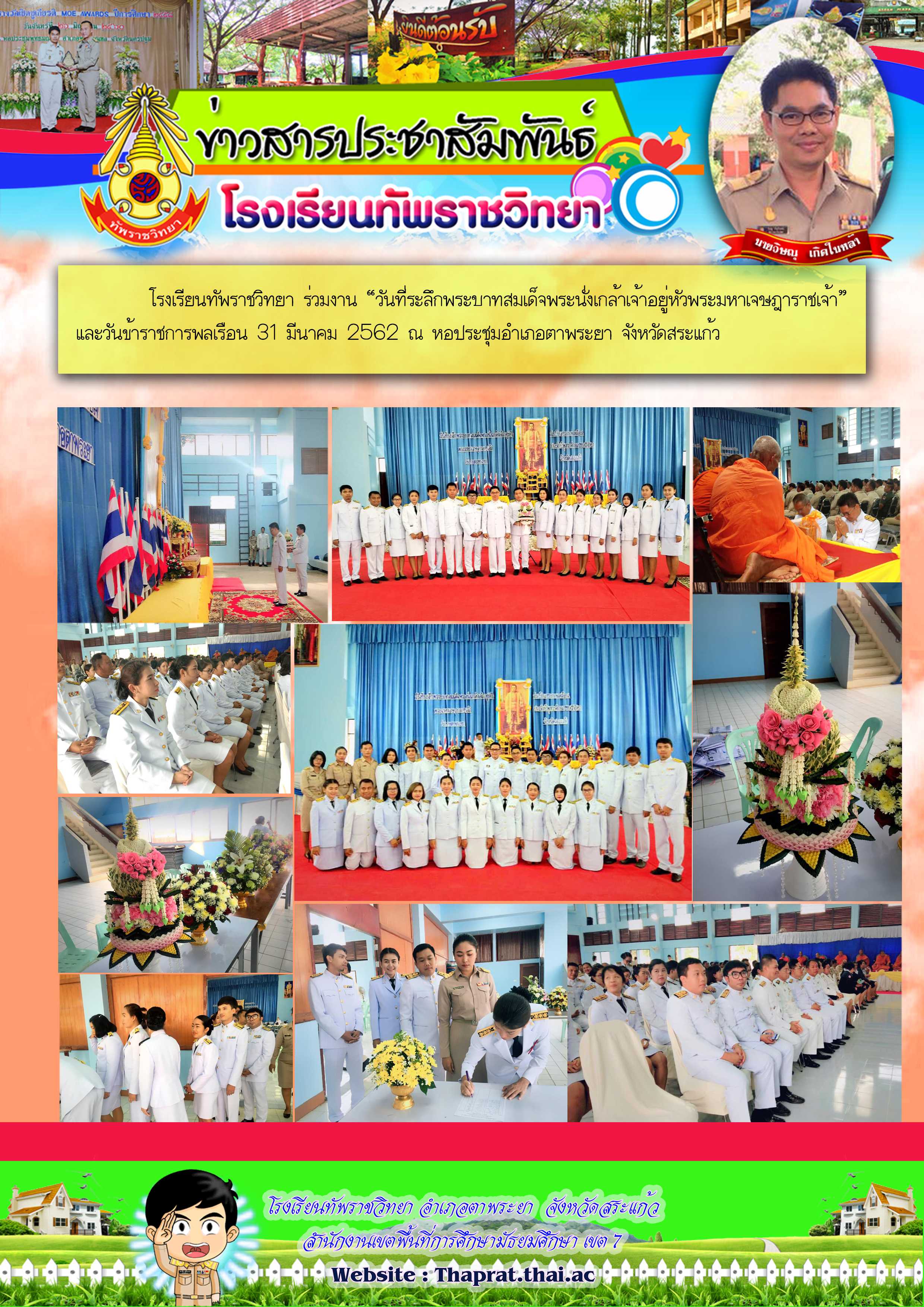 ผู้บริหารและคณะครูโรงเรียนทัพราชวิทยา ได้ร่วมงานวันรำลึกถึงพระบาทสมเด็จพระนั่งเกล้าเจ้าอยู่หัว มหาเจษฎาราชเจ้า และวันข้าราชการพลเรือน ณ หอประชุม อำเภอตาพระยา จ.สระแก้ว