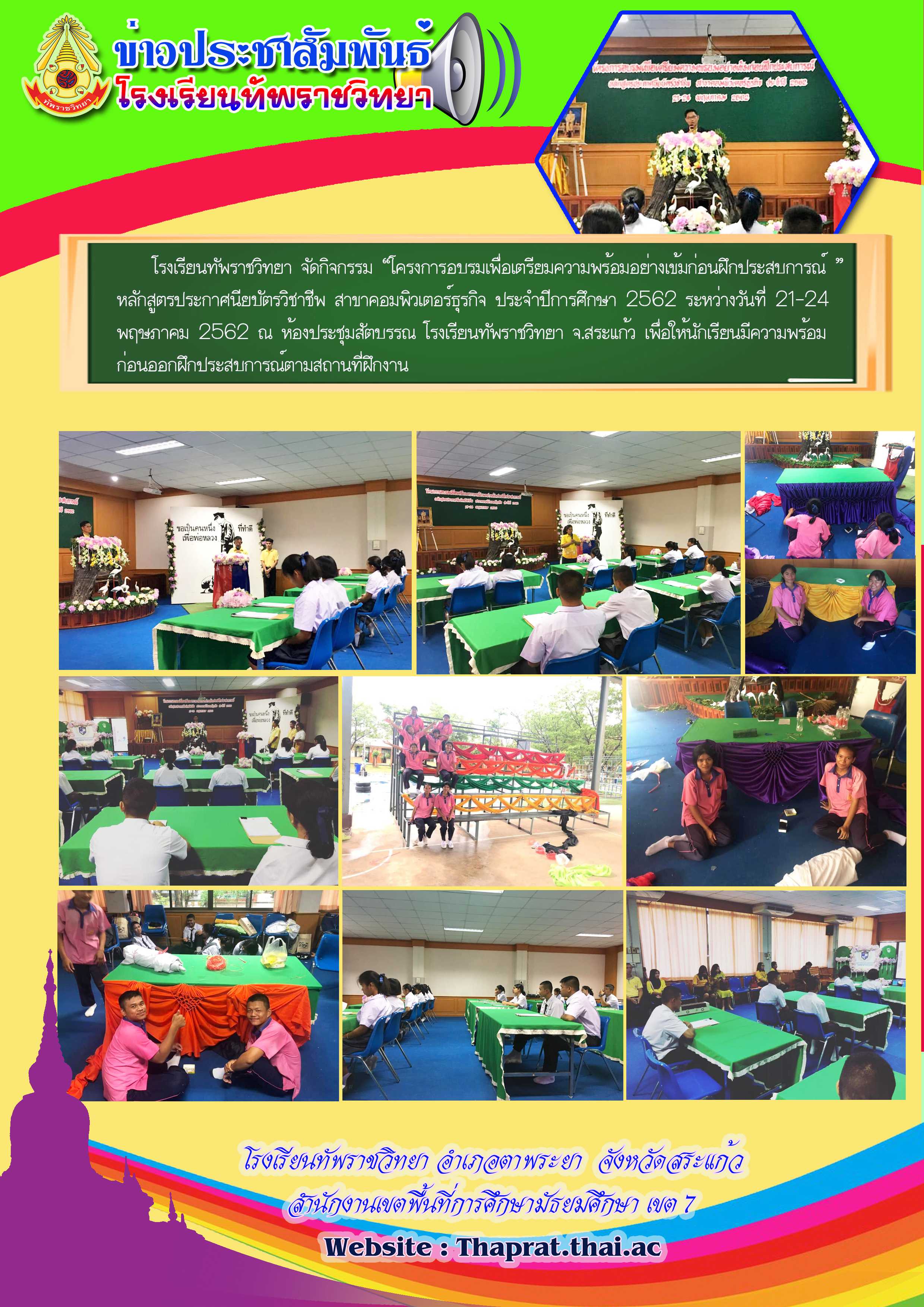 อบรมนักเรียนระดับ ปวช.3 ในการเตรียมความพร้อมอย่างเข็มก่อนออกฝึกประสบการณ์ ในวันที่ 21-24 พ.ค. 2562
