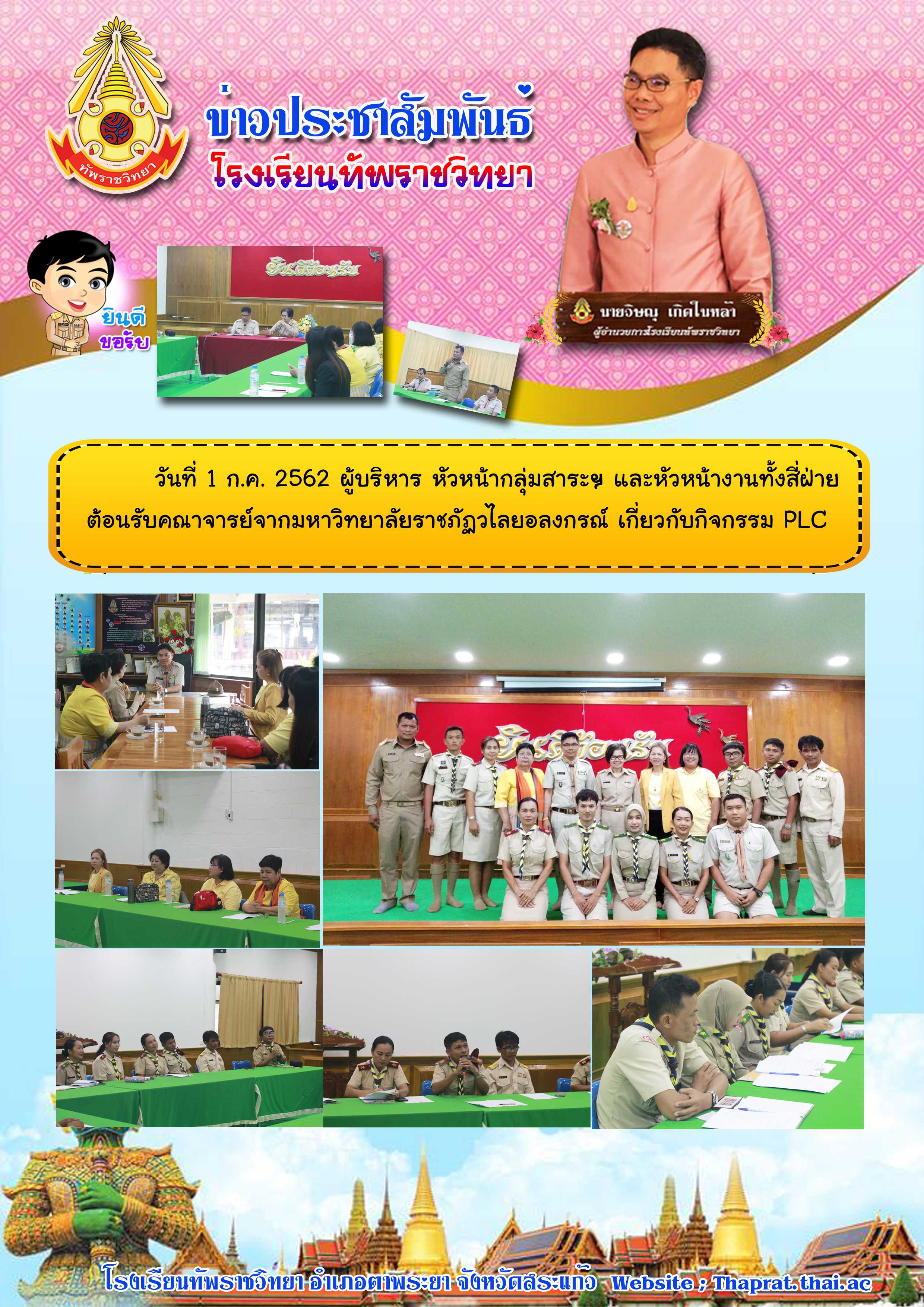 1 ก.ค. 62 คณะอาจารย์จากมหาวิทยาลัยราชภัฎวไลลงกรณ์ มาติดตามดูงาน PLC โรงเรียนทัพราชวิทยา