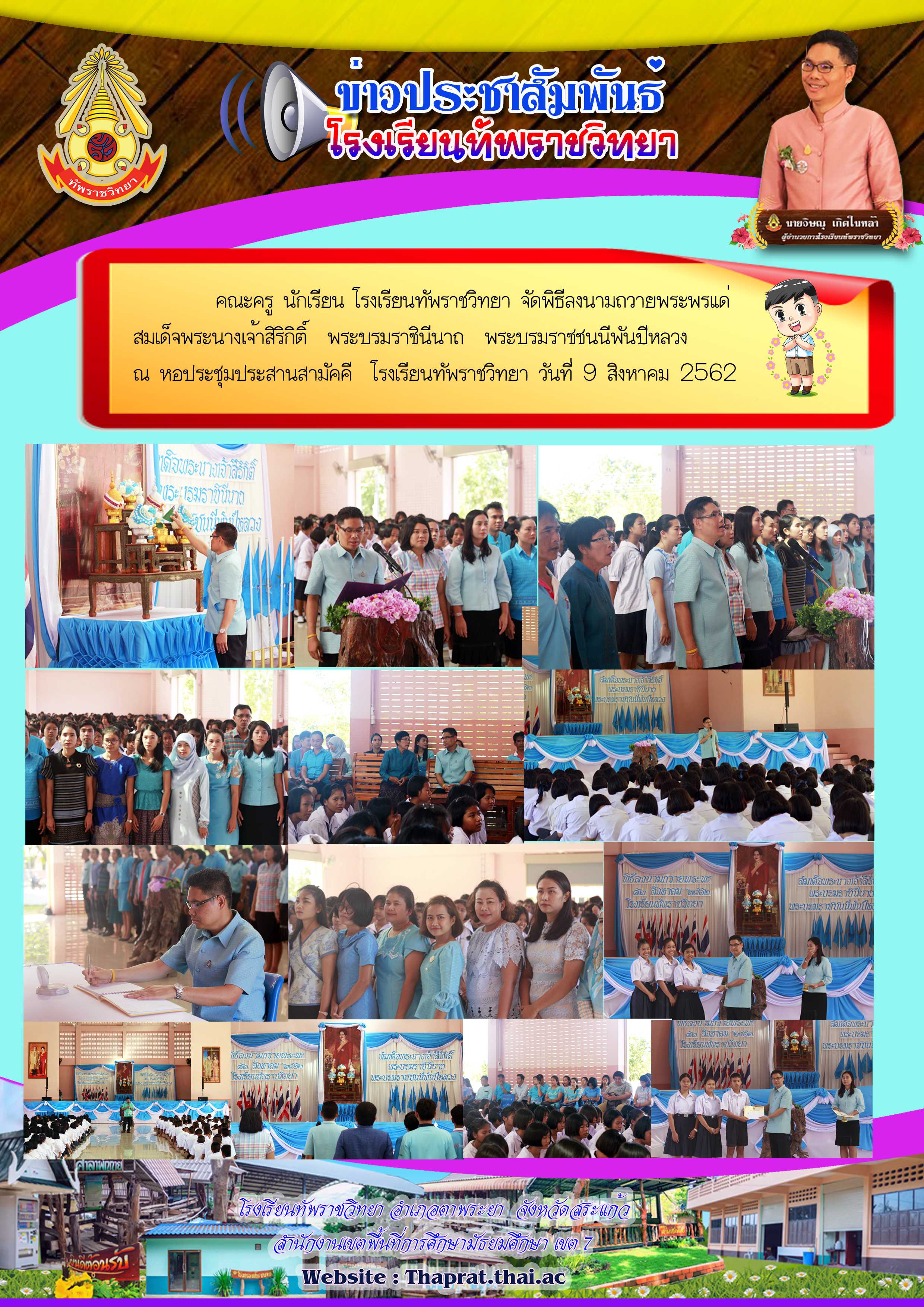 คณะครู นักเรียน โรงเรียนทัพราชวิทยา จัดพิธีลงนามถวายพระพรแด่ สมเด็จพระนางเจ้าสิริกิติ์ พระบรมราชินีนาถ พระบรมราชชนนีพันปีหลวง 9 สิงหาคม 2562