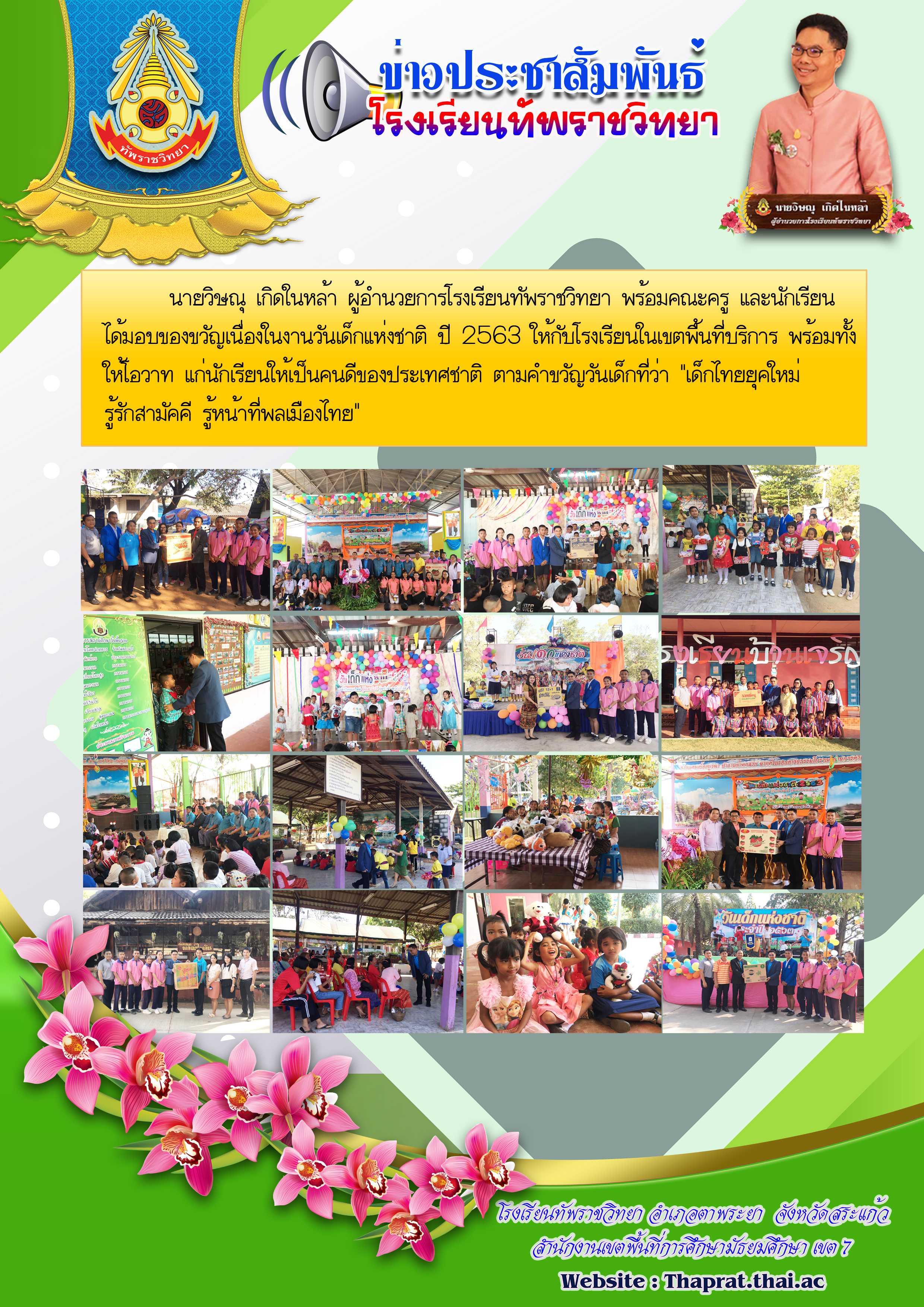 นายวิษณุ เกิดในหล้า ผู้อำนวยการโรงเรียนทัพราชวิทยา พร้อมคณะครู และนักเรียน ได้มอบของขวัญเนื่องในงานวันเด็กแห่งชาติ ปี 2563 ให้กับโรงเรียนในเขตพื้นที่บริการ พร้อมทั้งให้โอวาท แก่นักเรียนให้เป็นคนดีของป