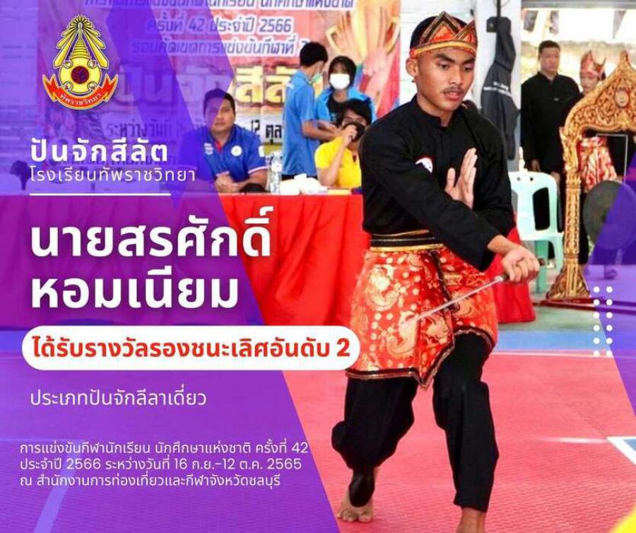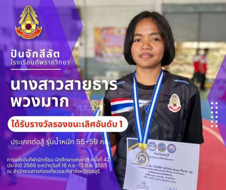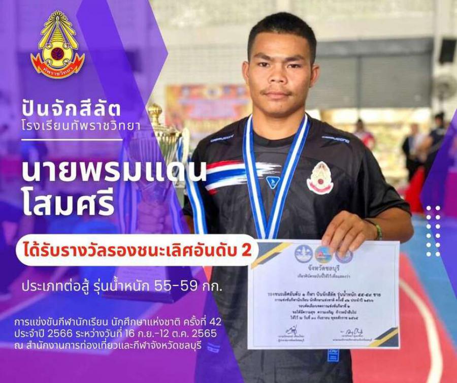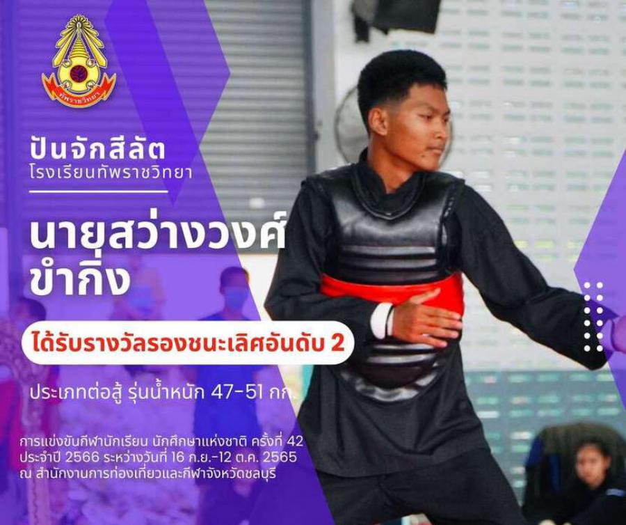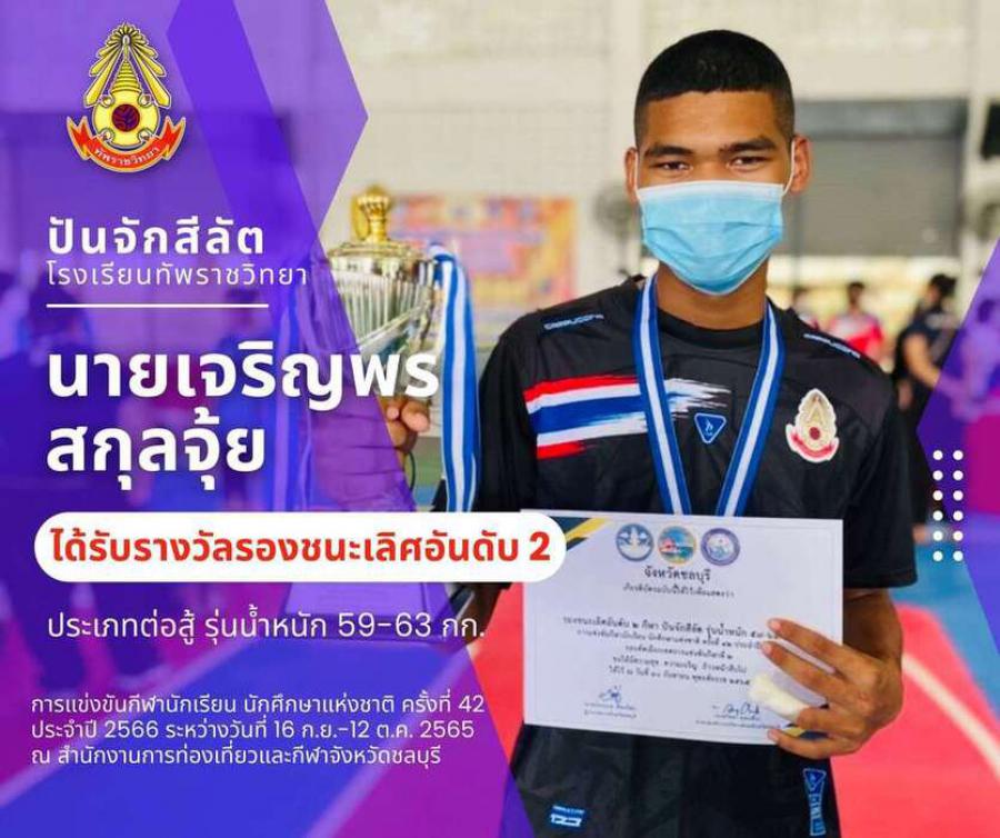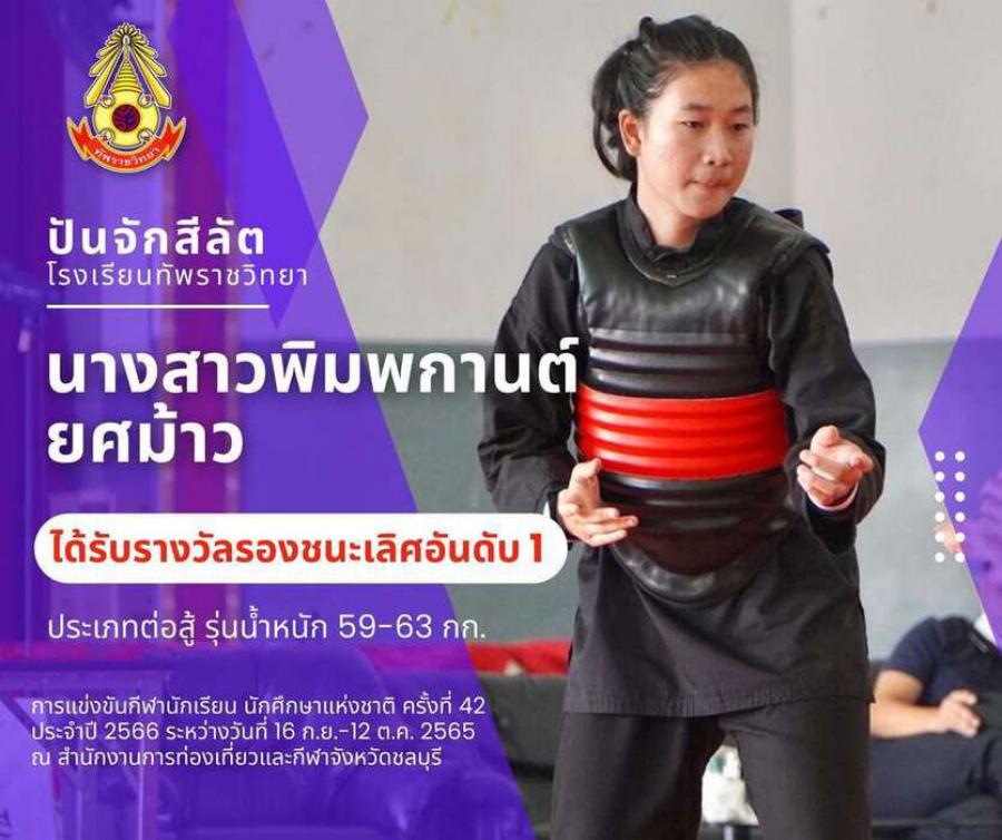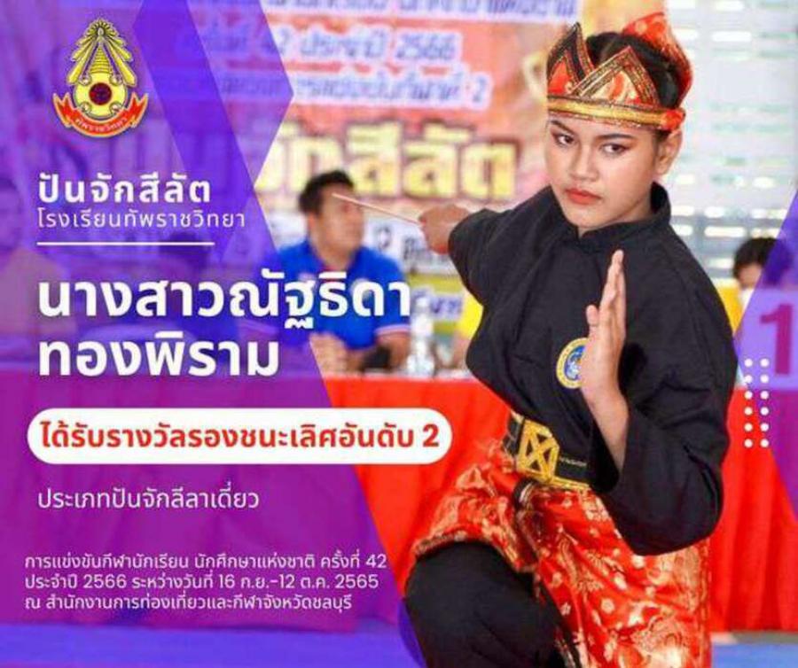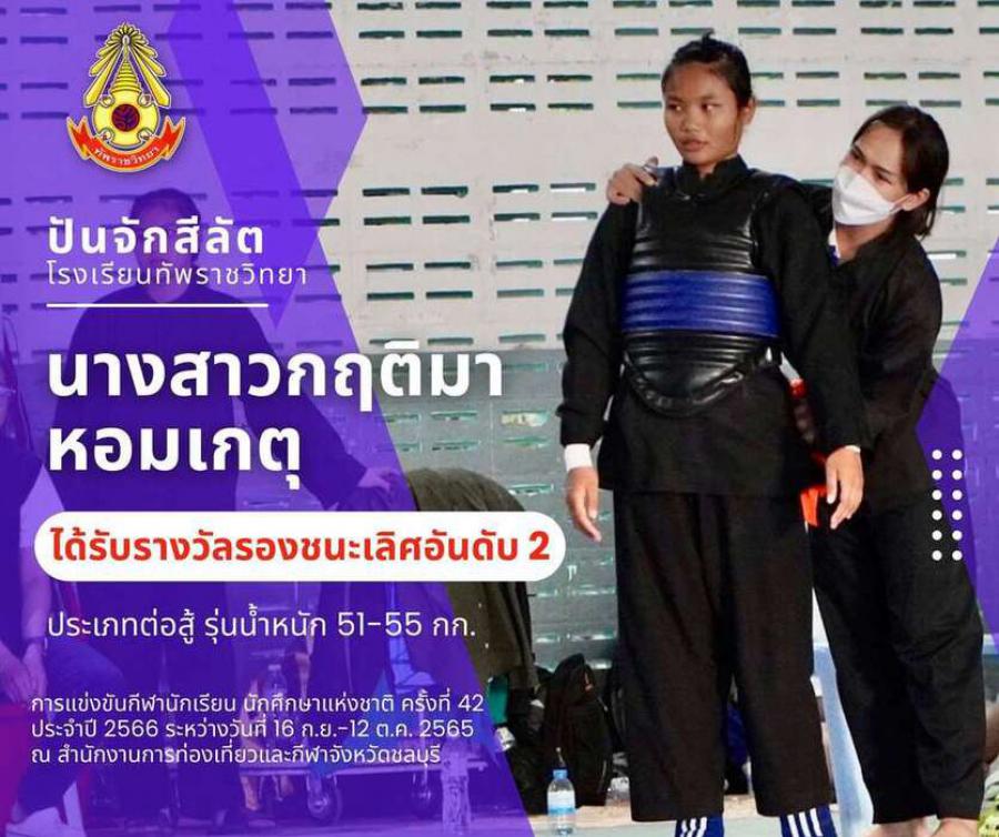 สรุปเหรียญกีฬาปันจักสีลัต โรงเรียนทัพราชวิทยา . การแข่งขันกีฬานักเรียน นักศึกษาแห่งชาติ ครั้งที่ 42 ประจำปี 2566 ระหว่างวันที่ 16 ก.ย.-12 ต.ค. 2565 ณ สำนักงานการท่องเที่ยวและกีฬาจังหวัดชลบุรี 3 ตุลาค