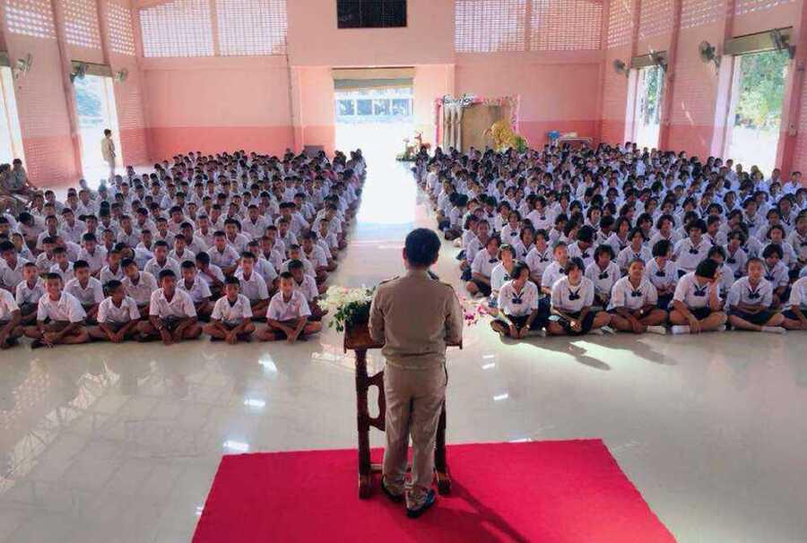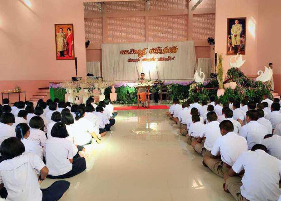 ผู้อำนวยการพบปะคณะครู นักเรียน ในโอกาสรับตำแหน่งใหม่ พร้อมกล่าวขอบคุณคณะทำงานจัดการต้อนรับ และมอบของที่ระลึก ณ หอประชุมประสานสัมพันธ์ เนื่องในโอกาสรับตำแหน่งผู้อำนวยการโรงเรียนทัพราชวิทยาอย่างเป็นทางการ S:0