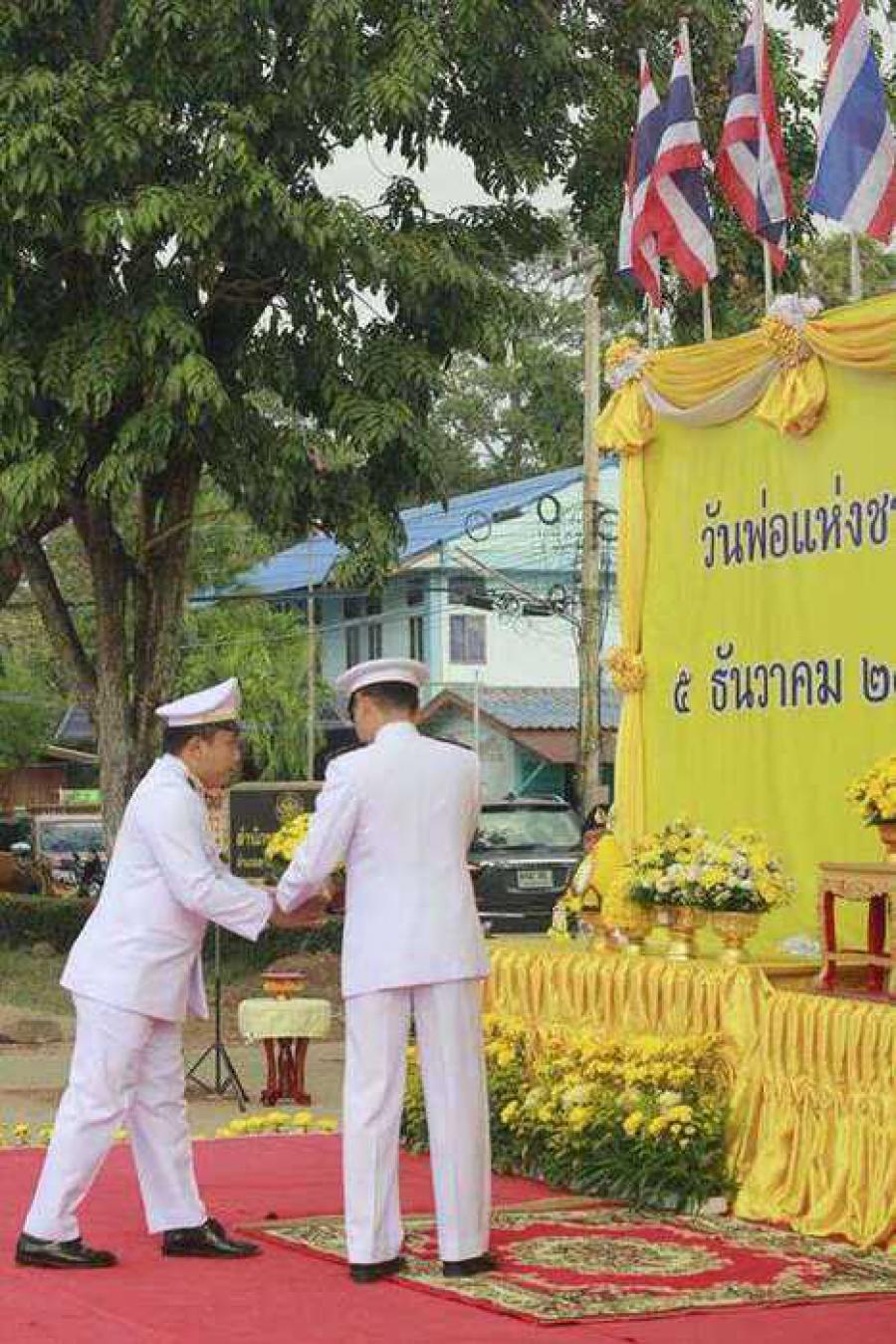 ผู้บริหาร ข้าราชการครู โรงเรียนทัพราชวิทยา เข้าร่วมพิธีถวายพานพุ่มดอกไม้และถวายบังคม เนื่องในวันพ่อแห่งชาติ 5 ธันวาคม 2562 ณ ลานหน้าที่ว่าการอำเภอตาพระยา