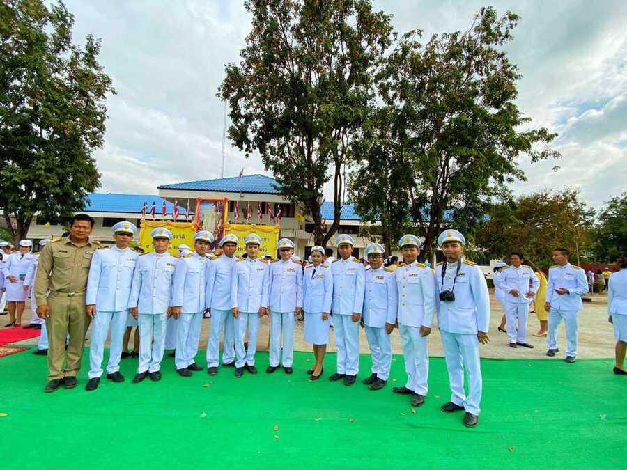 ผู้บริหาร ข้าราชการครู โรงเรียนทัพราชวิทยา เข้าร่วมพิธีถวายพานพุ่มดอกไม้และถวายบังคม เนื่องในวันพ่อแห่งชาติ 5 ธันวาคม 2562 ณ ลานหน้าที่ว่าการอำเภอตาพระยา S:0