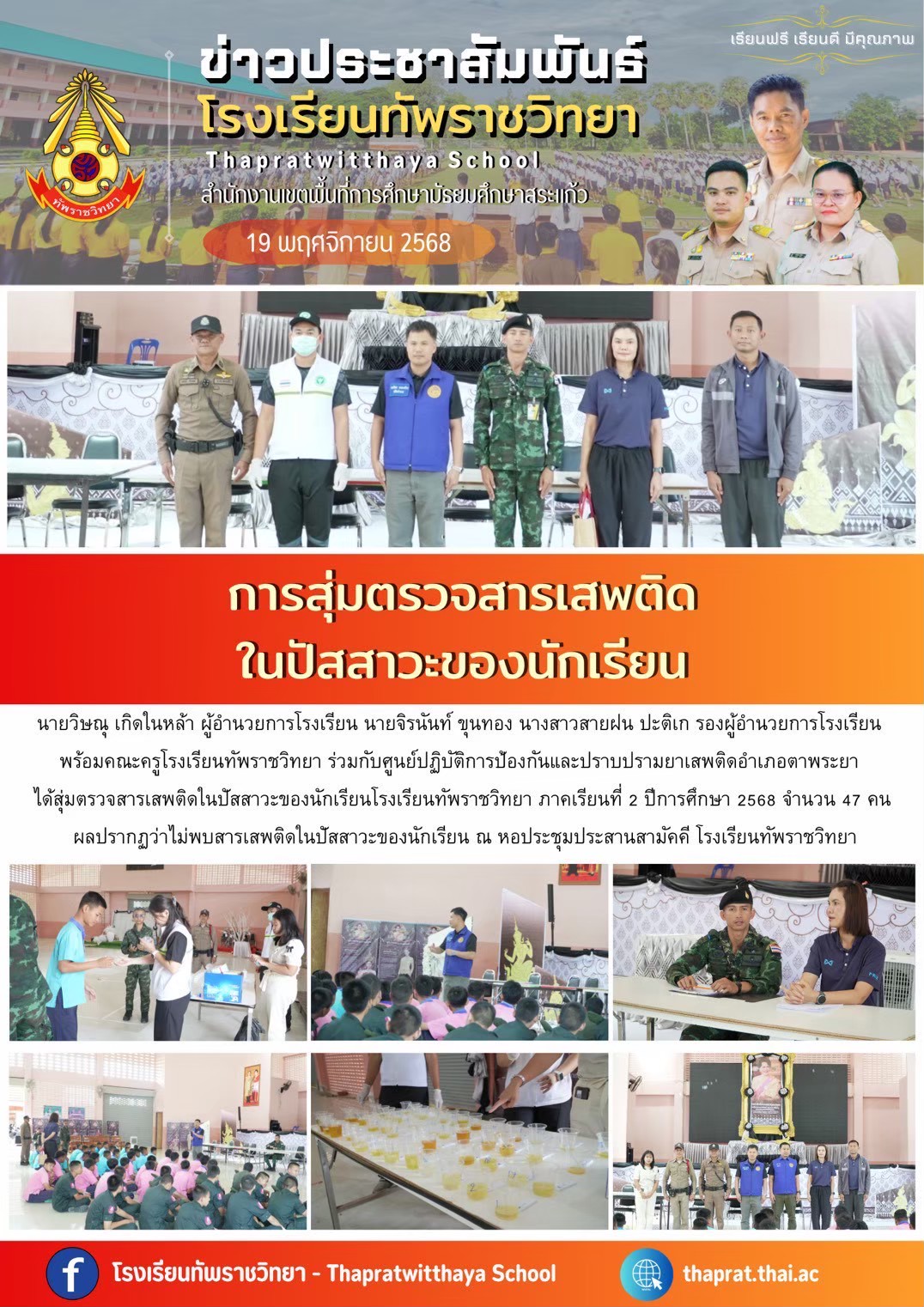 สุ่มตรวจสารเสพติดในปัสสาวะของนักเรียน