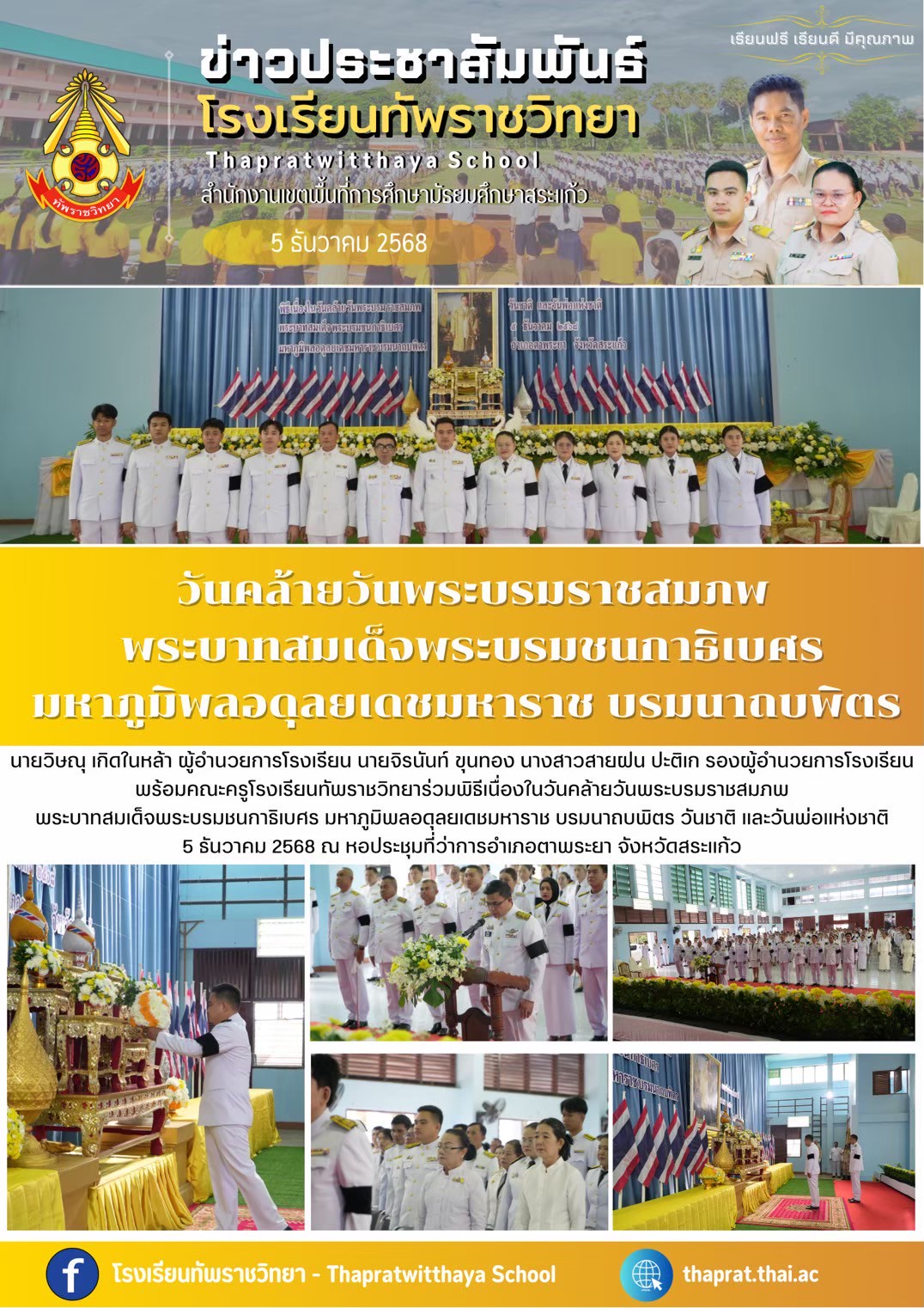 วันคล้ายวันพระราชสมภพพระาทสมเด็จพระบรมชนกาธิเบศร มห่ภูมิพลอดุลยเดชมหาราช บรมนาถบพิตร