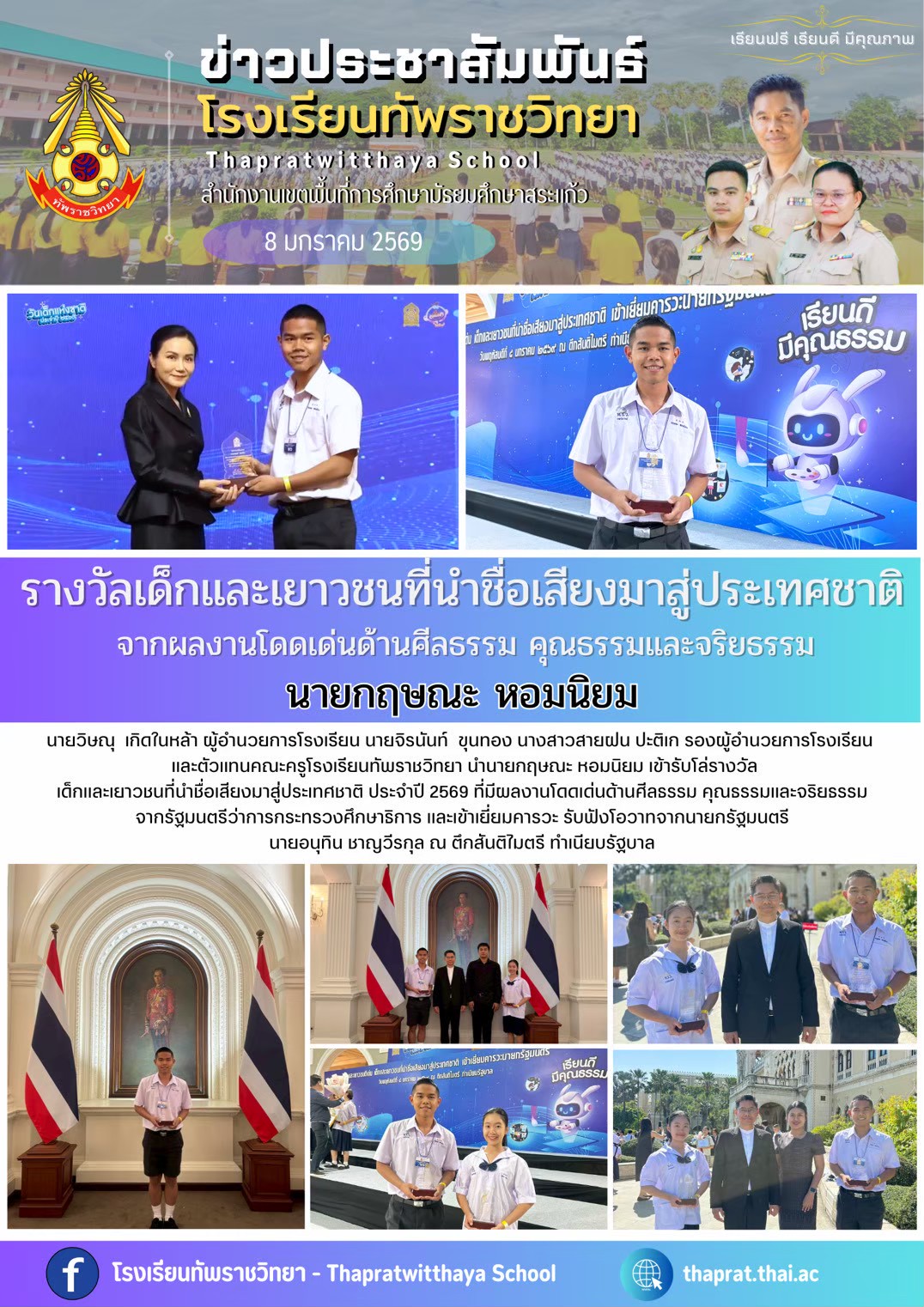 นายกฤษณะ หอมนิยม รับรางวัลเด็กและเยาวชนที่นำชื่อเสียงมาสู่ประเทศชาติ